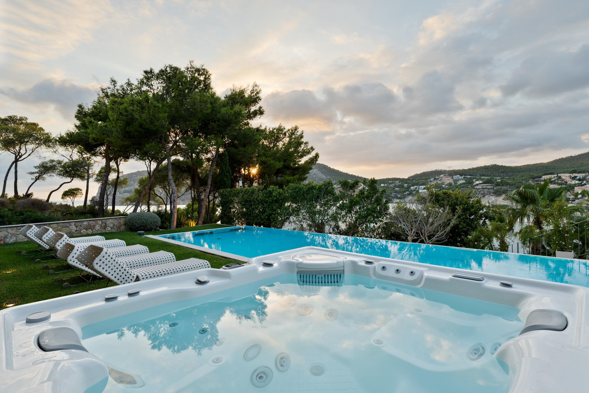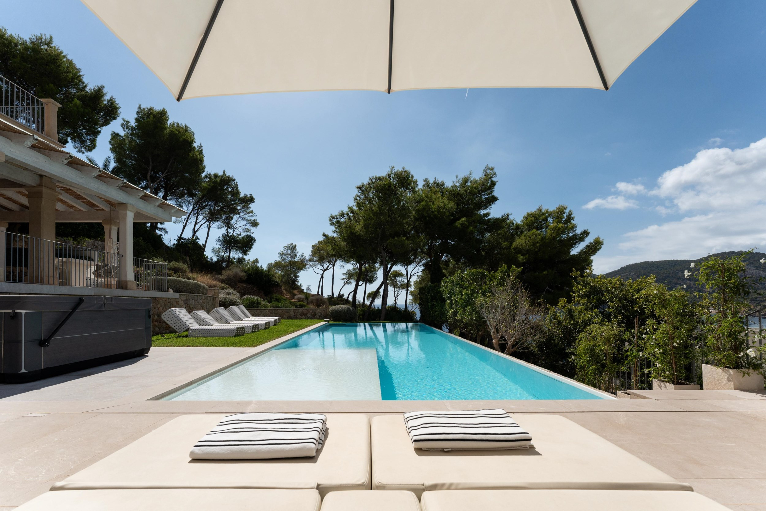 Villa Oasis del Mar ist eine schöne Ferienvilla mit atemberaubendem Blick auf die Bucht und die grünen Hänge, in Camp de Mar, Andratx, MallorcaVilla mit 4 Schlafzimmern, 4 Badezimmern, Meerblick und einem privaten beheizten Swimmingpool, Klimaanlage, WiFi, Jacuzzi, Smart TV, Platz für maximal 8 Personen