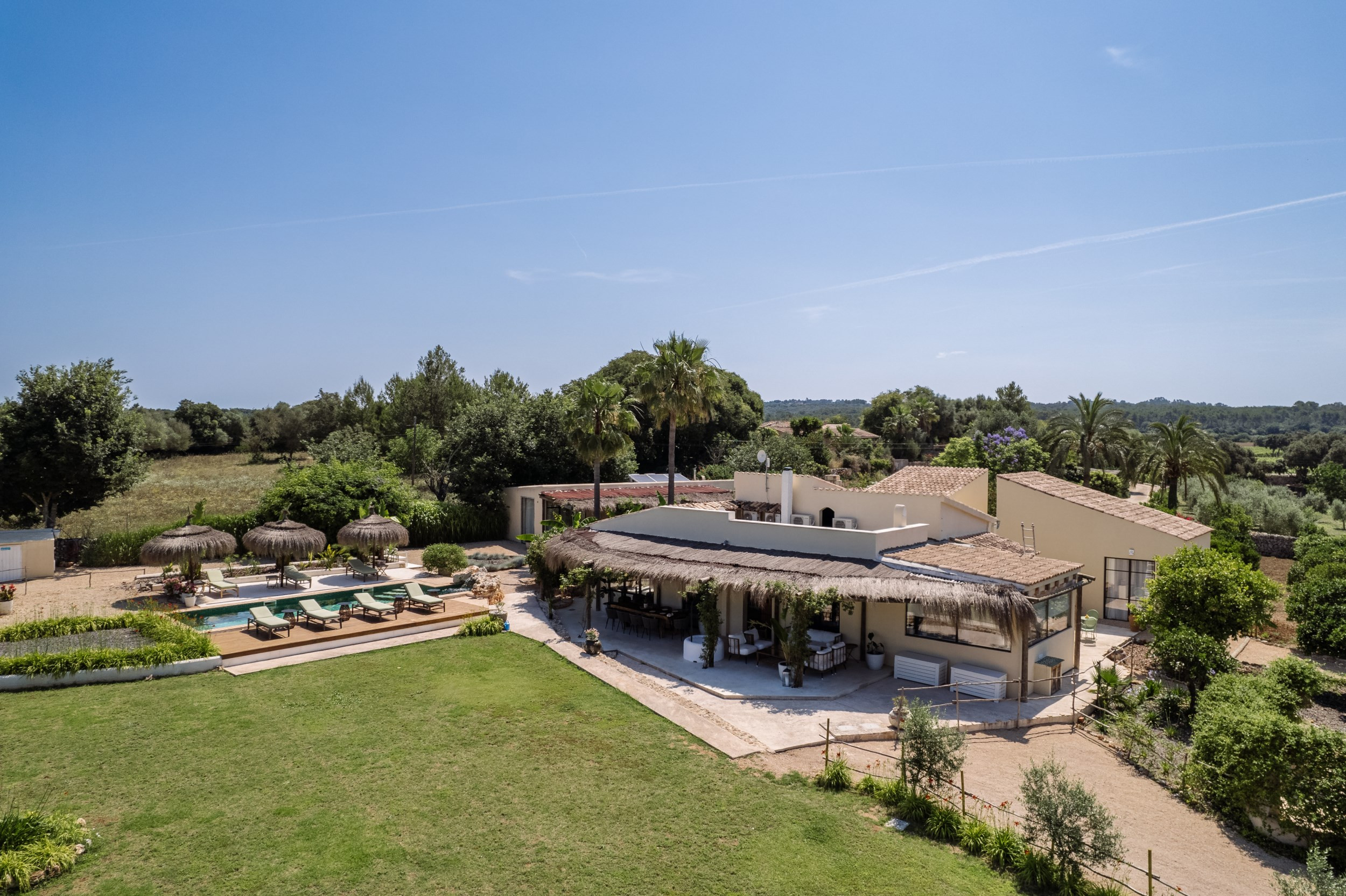 La Finca de Llubí ist ein anspruchsvoller und luxuriöser Rückzugsort, der kulturelle Inspiration und Architektur vereint. Das Anwesen wurde 2018 komplett renoviert und ist ein Meisterwerk an Design und Handwerkskunst mit einer über 150m² großen atemberaubenden Terrasse, mit handgehobelten Hickory-Holzböden, handbemalten Decken und exquisiten Kristallfenstern. Sie bietet einen atemberaubenden Blick über Llubi und das Herz Mallorcas. Klare Möbel mischen sich mit rauen Naturtexturen und exotischen Accessoires, um den perfekten Ort der Entspannung zu schaffen.