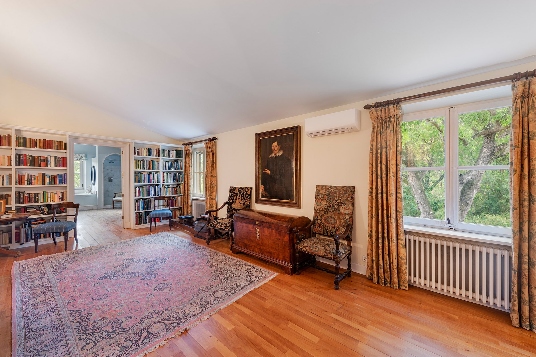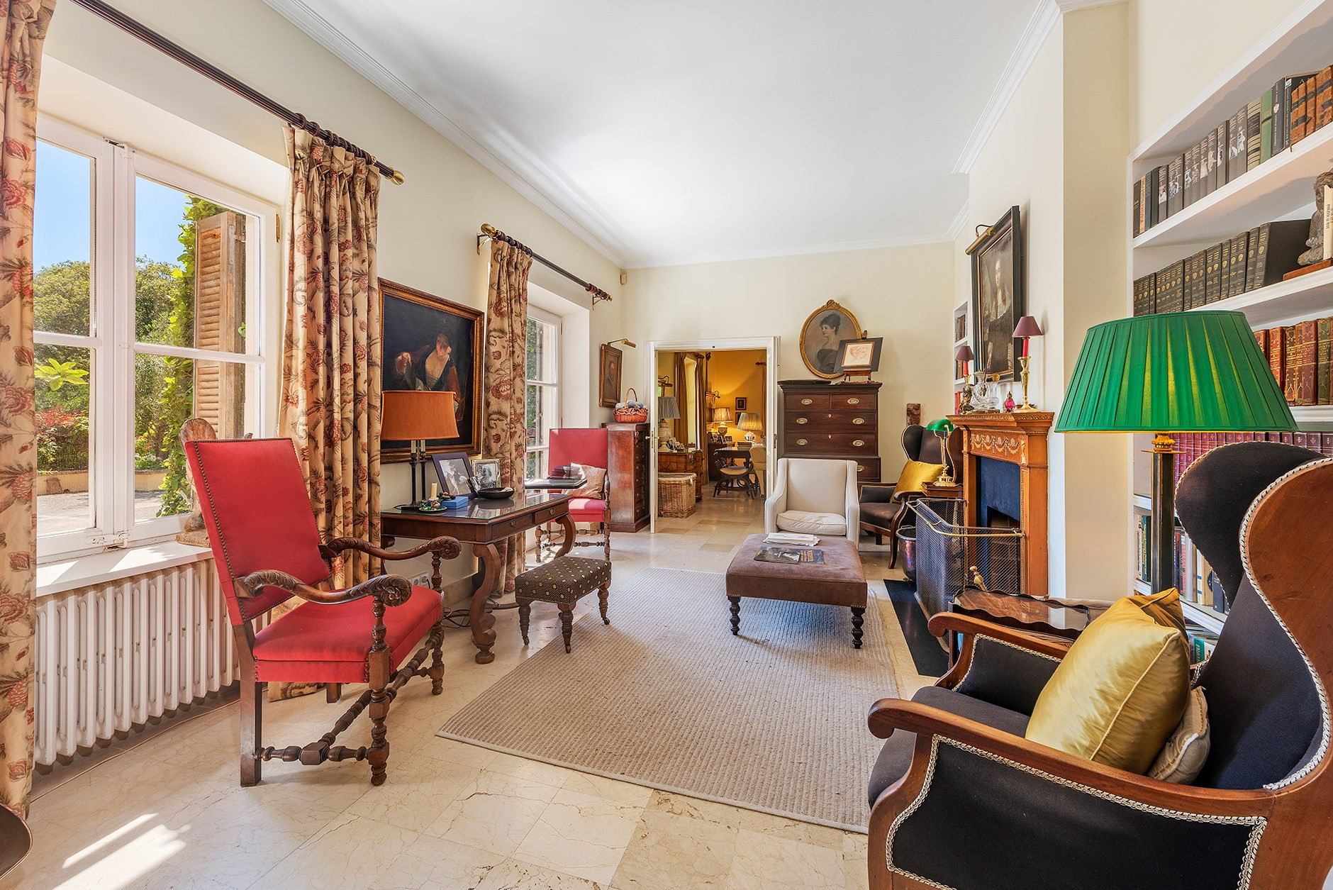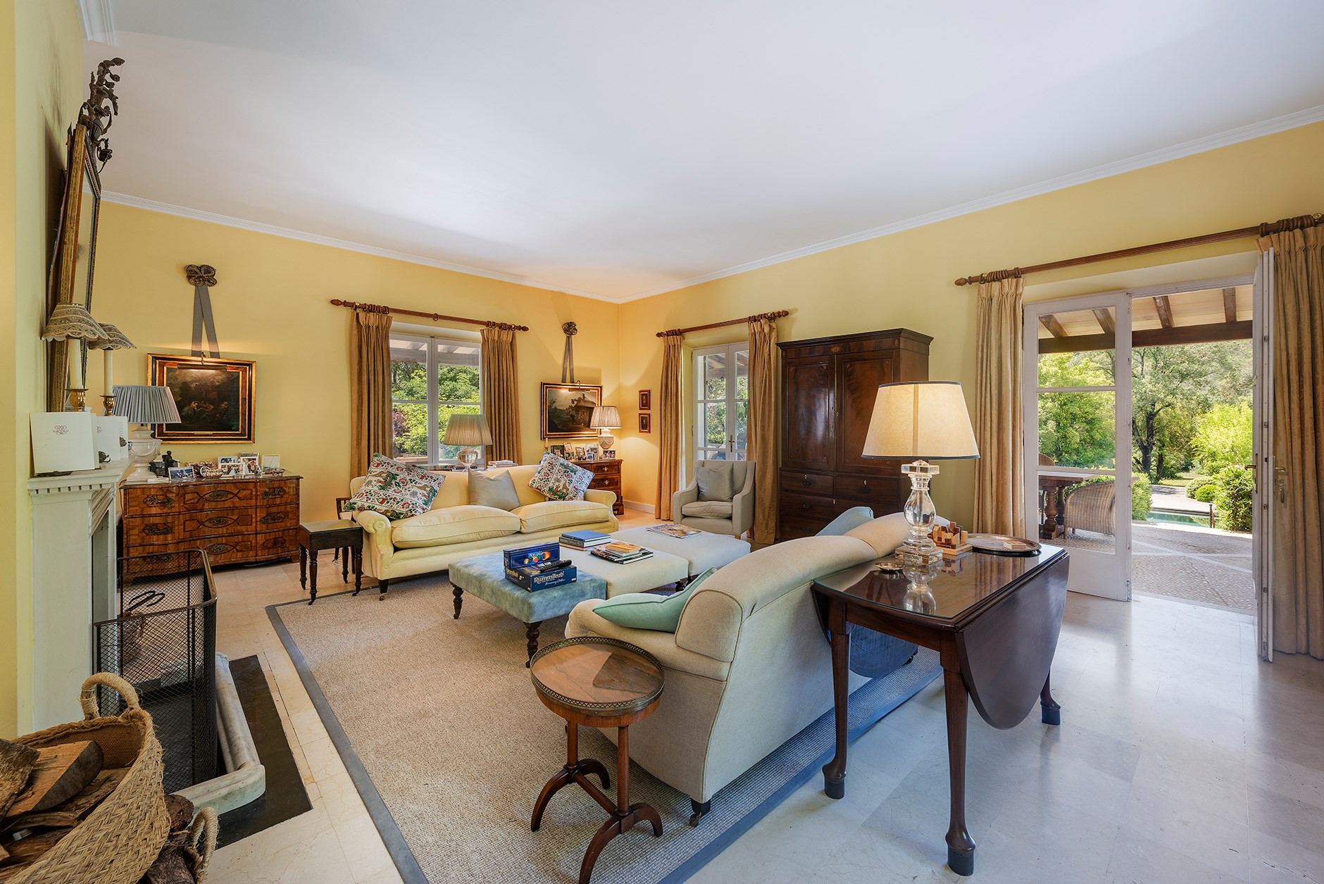 Im Inneren besticht die Villa durch elegantes Ambiente, hohe Decken, viel Tageslicht und traditionelle Materialien wie Stein und Marmor. Im Erdgeschoss befinden sich zwei großzügige Wohnzimmer, ein Speisesaal für kühlere Tage und ein Doppelschlafzimmer mit eigenem Bad. Die Küche ist komplett ausgestattet – mit Aga-Herd, Miele-Geräten, Nespresso-Maschine, Vorratsraum und separatem Hauswirtschaftsraum. Im Obergeschoss liegt die Mastersuite mit eigenem Bad, ergänzt durch zwei weitere Doppelschlafzimmer mit Bad sowie einen Kinderbereich mit Etagenbett, Zweibettzimmer und Einzelzimmer. Das Haus verfügt über Klimaanlage in allen Räumen (außer in einem der Wohnzimmer).