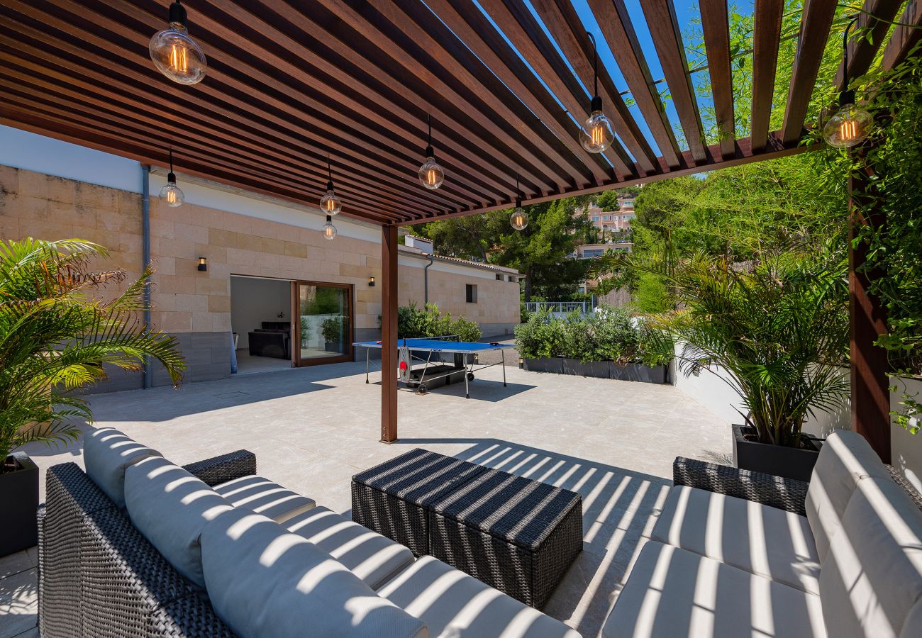 Mansión el Vila ist eine elegante Ferienvilla, die hoch oben in den Bergen liegt, umgeben von Natur, nur wenige Minuten vom Stadtzentrum und den Stränden von Puerto Pollensa entfernt. Sie bietet einen fantastischen Blick auf das Tal und die Bucht von Pollensa und ist ideal, um sich stilvoll zu entspannen.