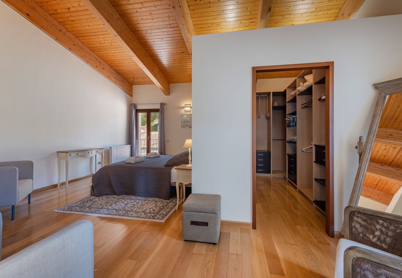 Im Obergeschoss befinden sich zwei weitere schöne Zweibett-Schlafzimmer sowie ein Doppel- und ein Einzelzimmer. Sie teilen sich zwei komfortable Bäder (Bad/Dusche, WC). Der spektakuläre Swimmingpool (8 m lang) hat eine möblierte Sonnenterrasse mit Pergola. Es gibt viele ruhige Plätze zum Sitzen und Entspannen im Schatten der alten Olivenbäume mit unvergesslichem Meerblick.