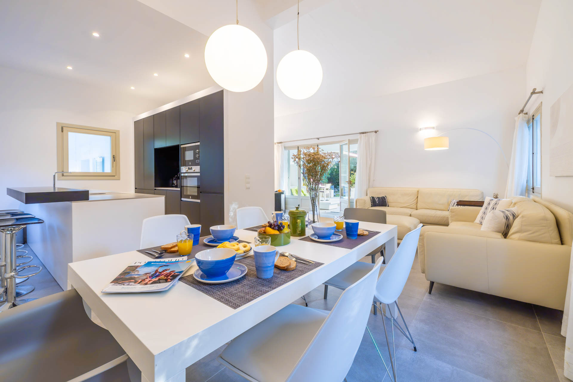 Das Interieur von Villa Alba ist der Traum jedes Designers. Die beeindruckende offene Wohn-/Esszone lässt sich nur als "Augenschmaus" beschreiben. Ultracool in strahlendem Weiß, elegantem Schwarz mit dezenten Akzenten aus Edelstahl und Chrom.