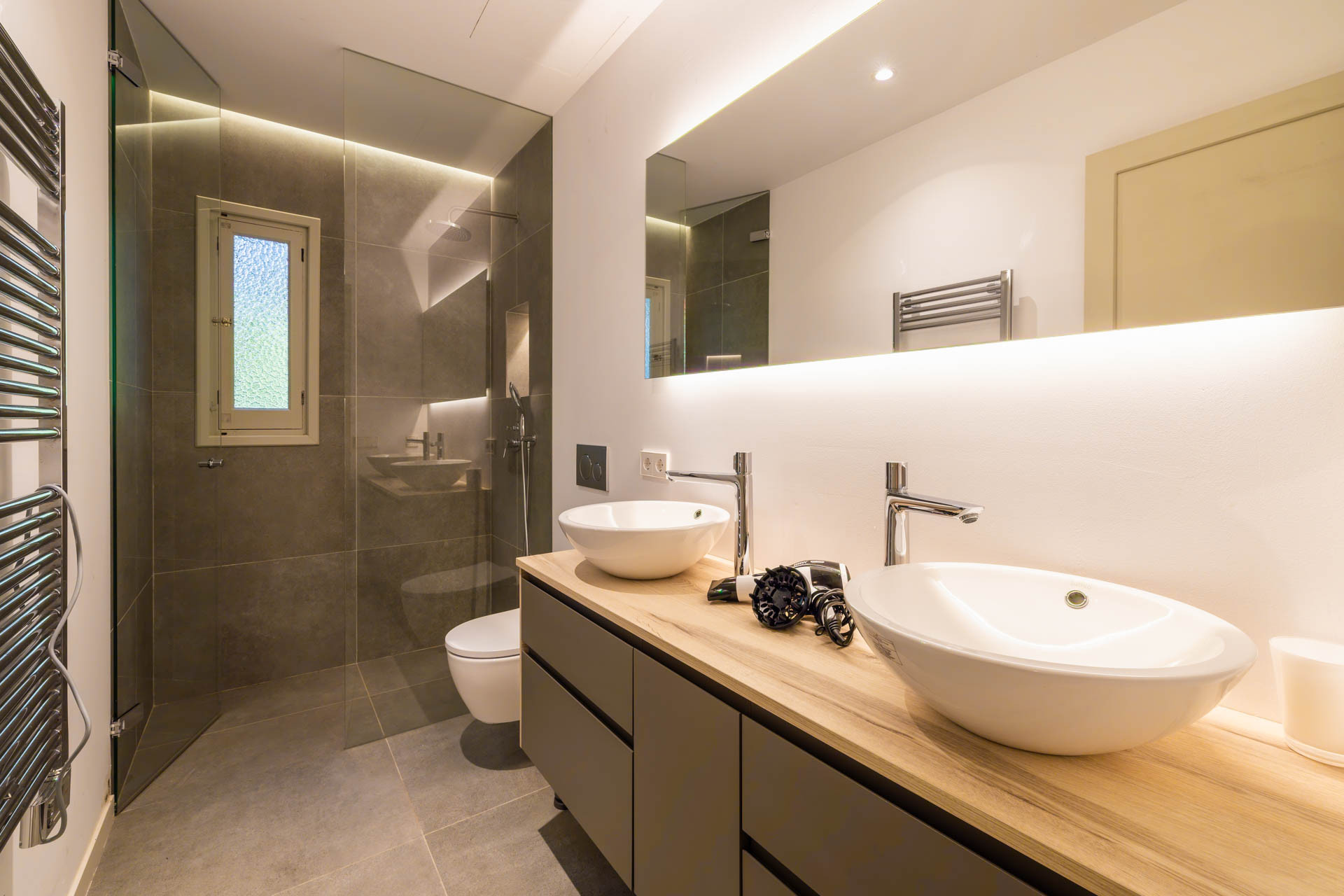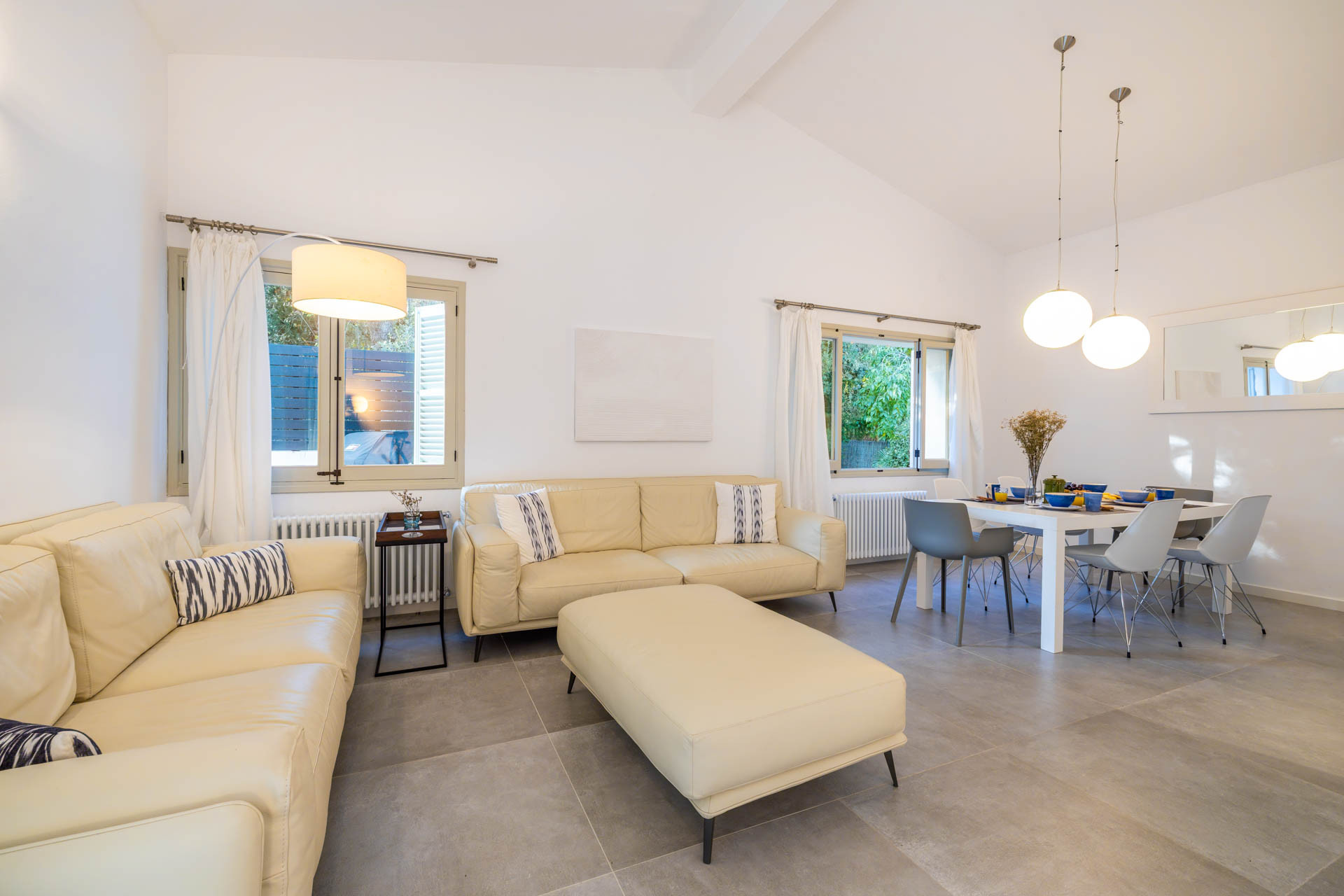 Große französische Fenster lassen das sanfte mediterrane Licht herein und die gesamte Villa ist mit warm/kalt Klimaanlage ausgestattet.