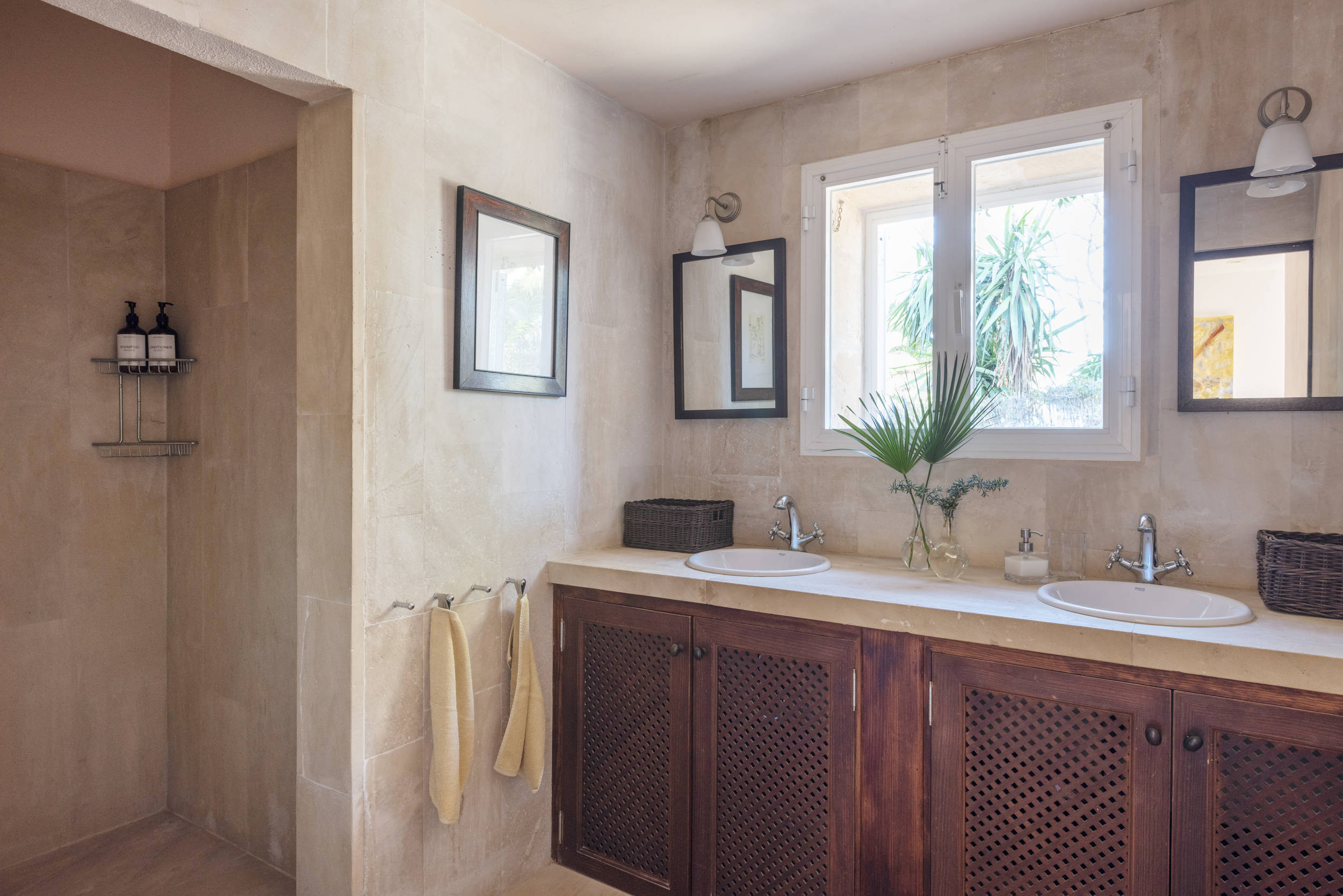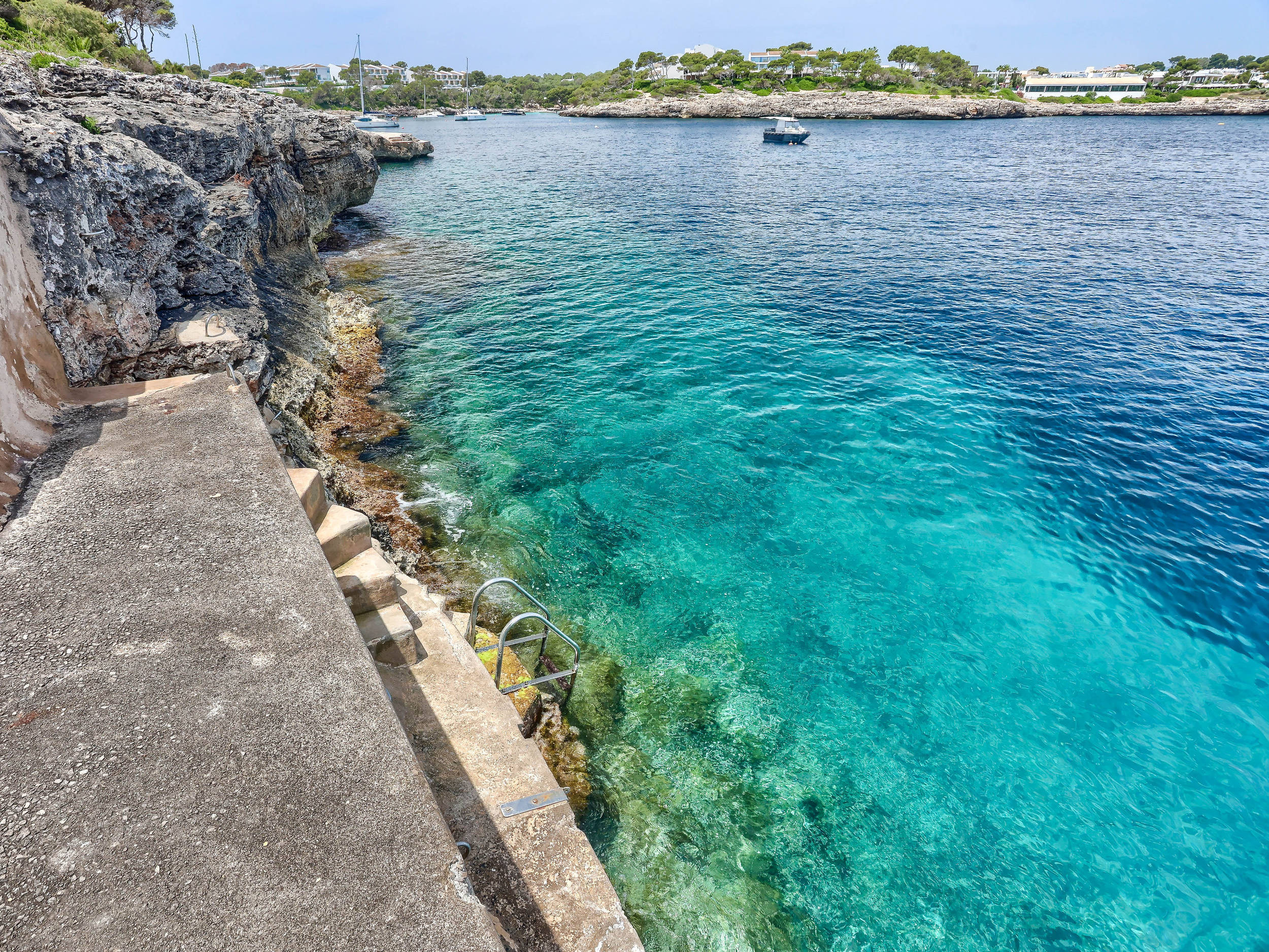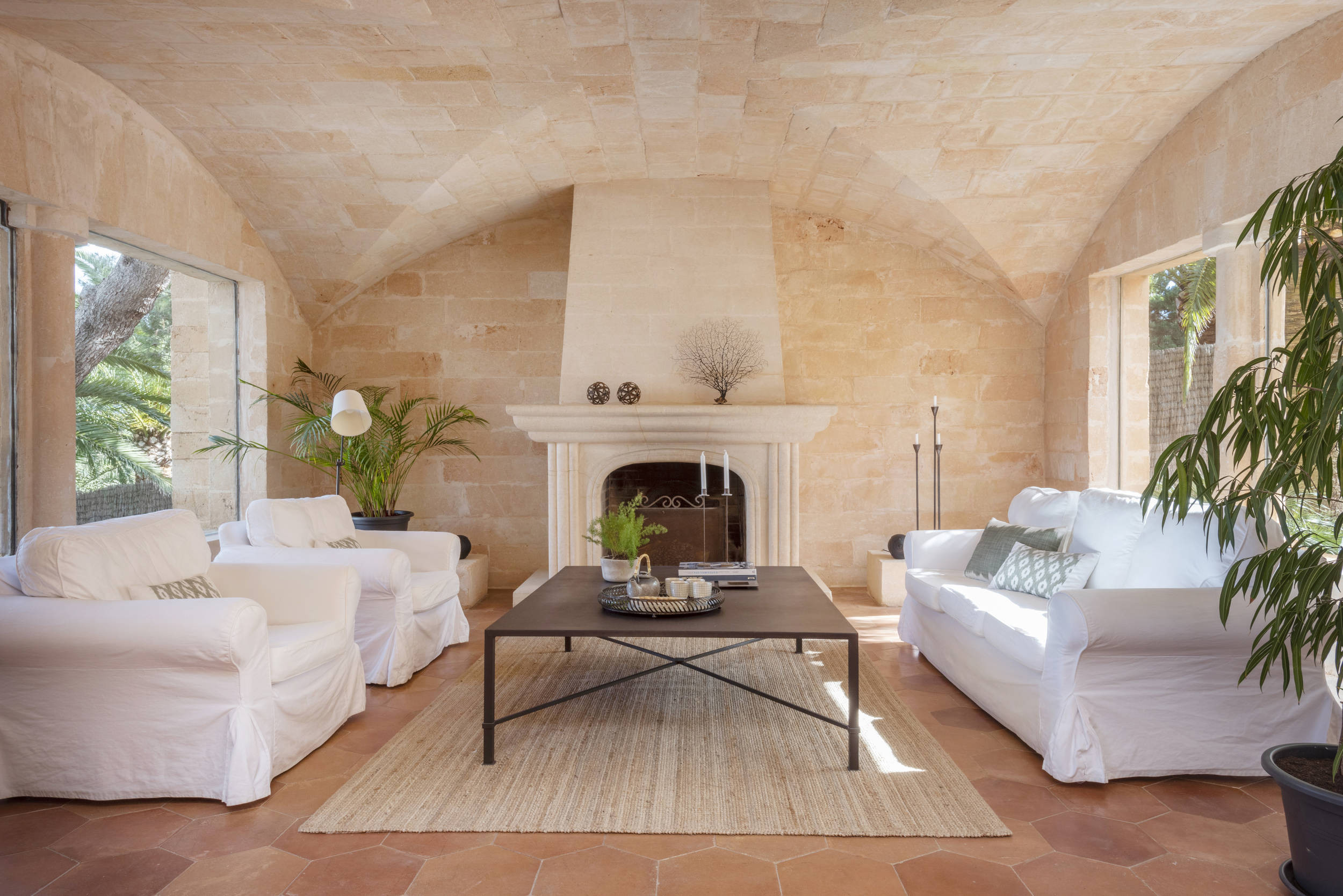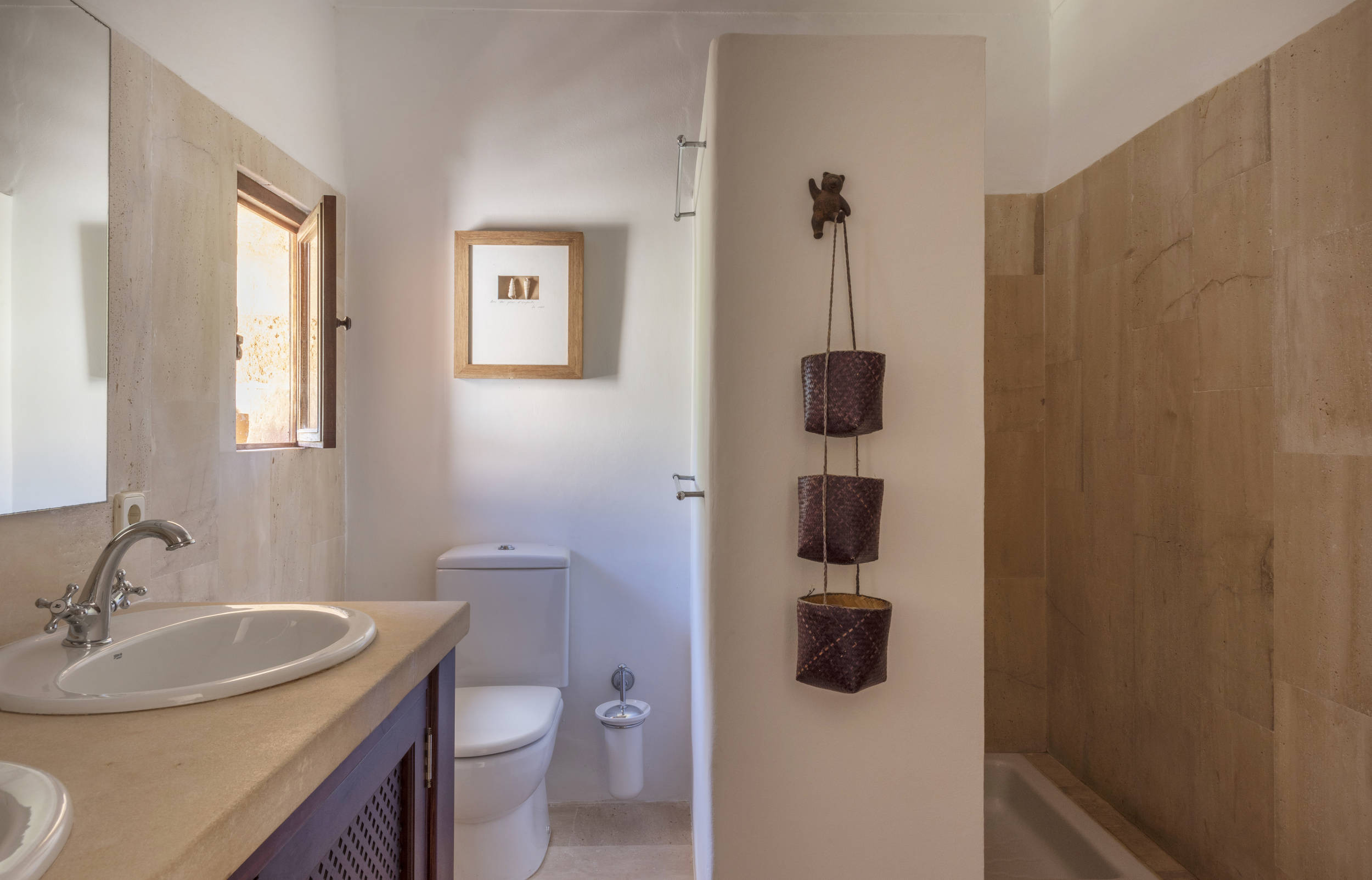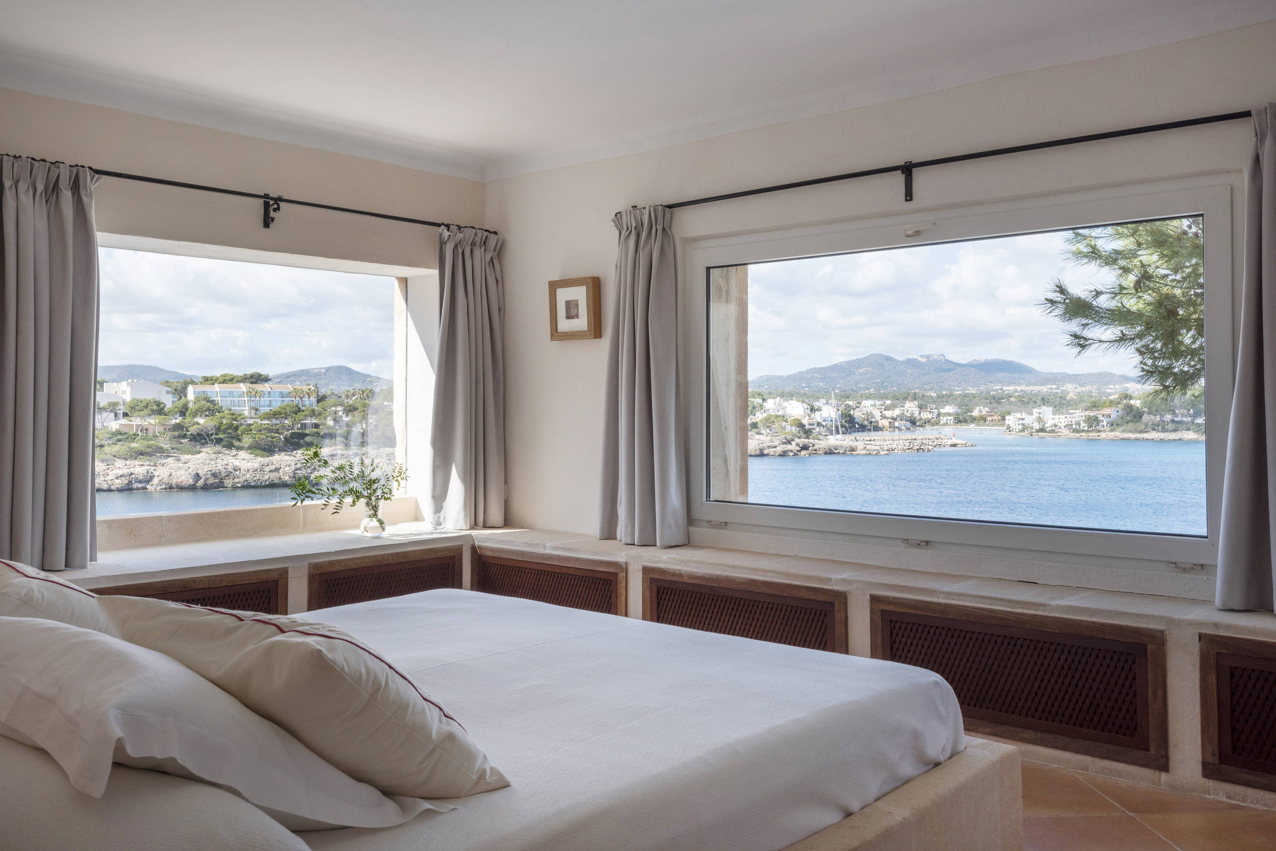 Diese herrliche Villa ist ideal für Strandliebhaber, da es in der Nähe mehrere Strände gibt, wie z.B. den schönen Sandstrand und das türkisfarbene Wasser von Cala Mondrago. Der nächstgelegene Strand, Calo des Homes Morts, kann vom Haus aus gesehen werden und Cala Sa Torre ist nur etwa 400 Meter entfernt. Die charmanten Geschäfte und Restaurants an der Promenade von Porto Petro sind ebenfalls zu Fuß erreichbar. Die Villa ist eine elegante Familienresidenz mit Natursteinwänden und einer beruhigenden, neutralen Inneneinrichtung, die ein Gefühl von luxuriösem Komfort vermittelt. Im Erdgeschoss befinden sich eine gut ausgestattete Küche und ein geräumiges, offenes Wohnzimmer mit zwei separaten Wohnbereichen und einem Esszimmer. Dieser Raum ist durch die großen Fenster lichtdurchflutet und bietet einen wunderschönen Meerblick. Flügeltüren führen auf eine überdachte Essterrasse und einen Sitzbereich im Freien.