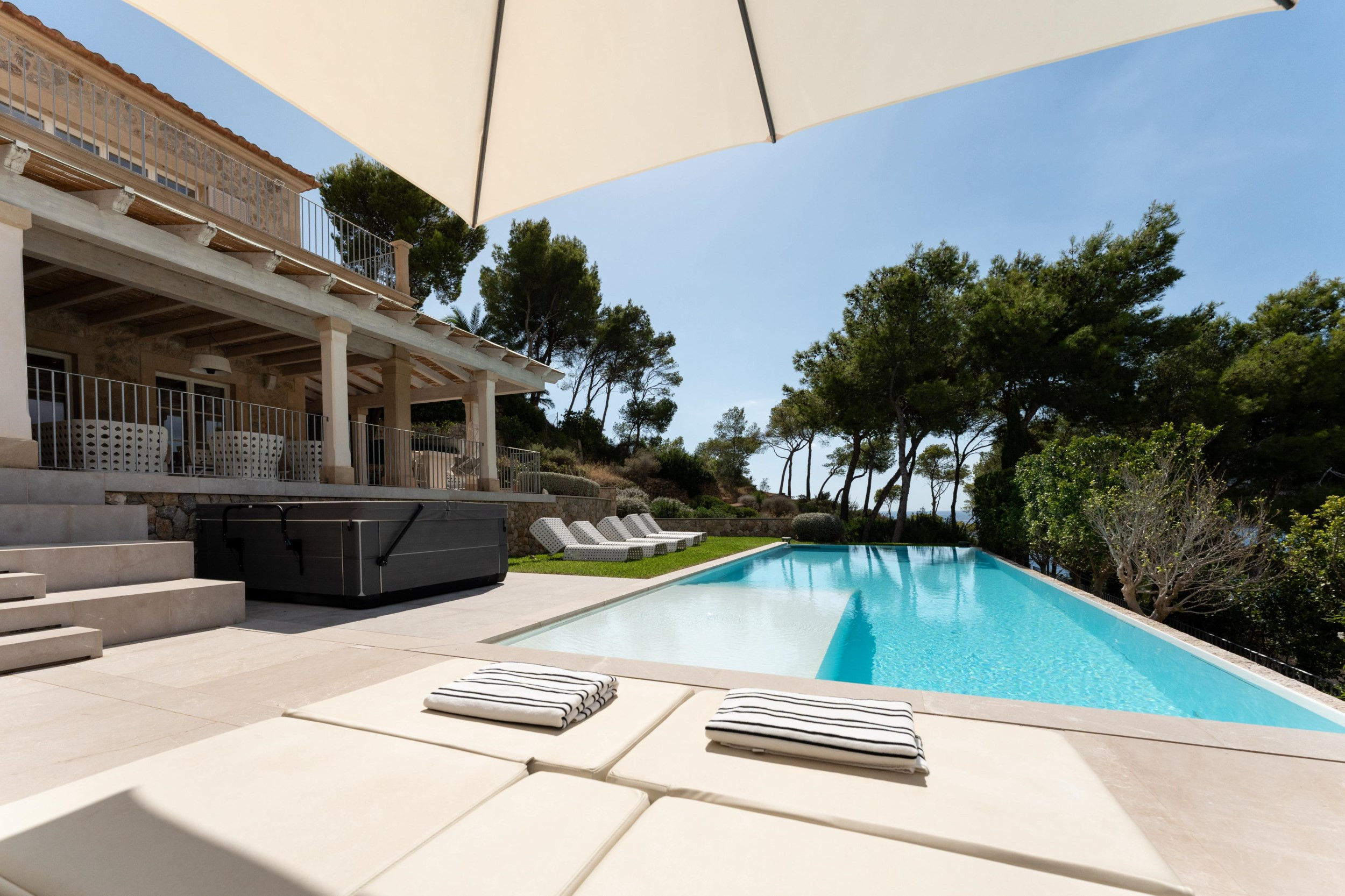Villa Oasis del Mar is a lovely holiday villa with stunning vistas of the bay and verdant hillsides, in Camp de Mar, Andratx, Mallorca4 Bedroom, 4 Bathroom Villa with Sea View and a Private Heated Swimming Pool , Air Conditioning, WiFi, Jacuzzi, Smart TV, Sleeps a maximum of 8 people