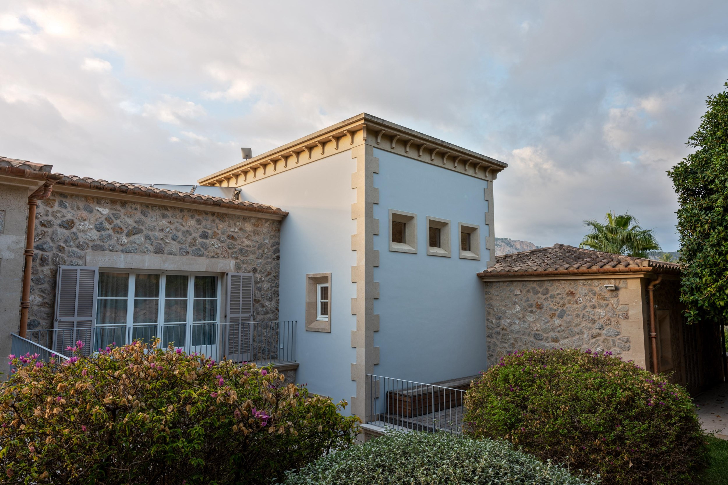 The fifth bedroom and en suite bathroom are located in a charming guest house which also houses a kitchen, laundry room, and sea view terrace.