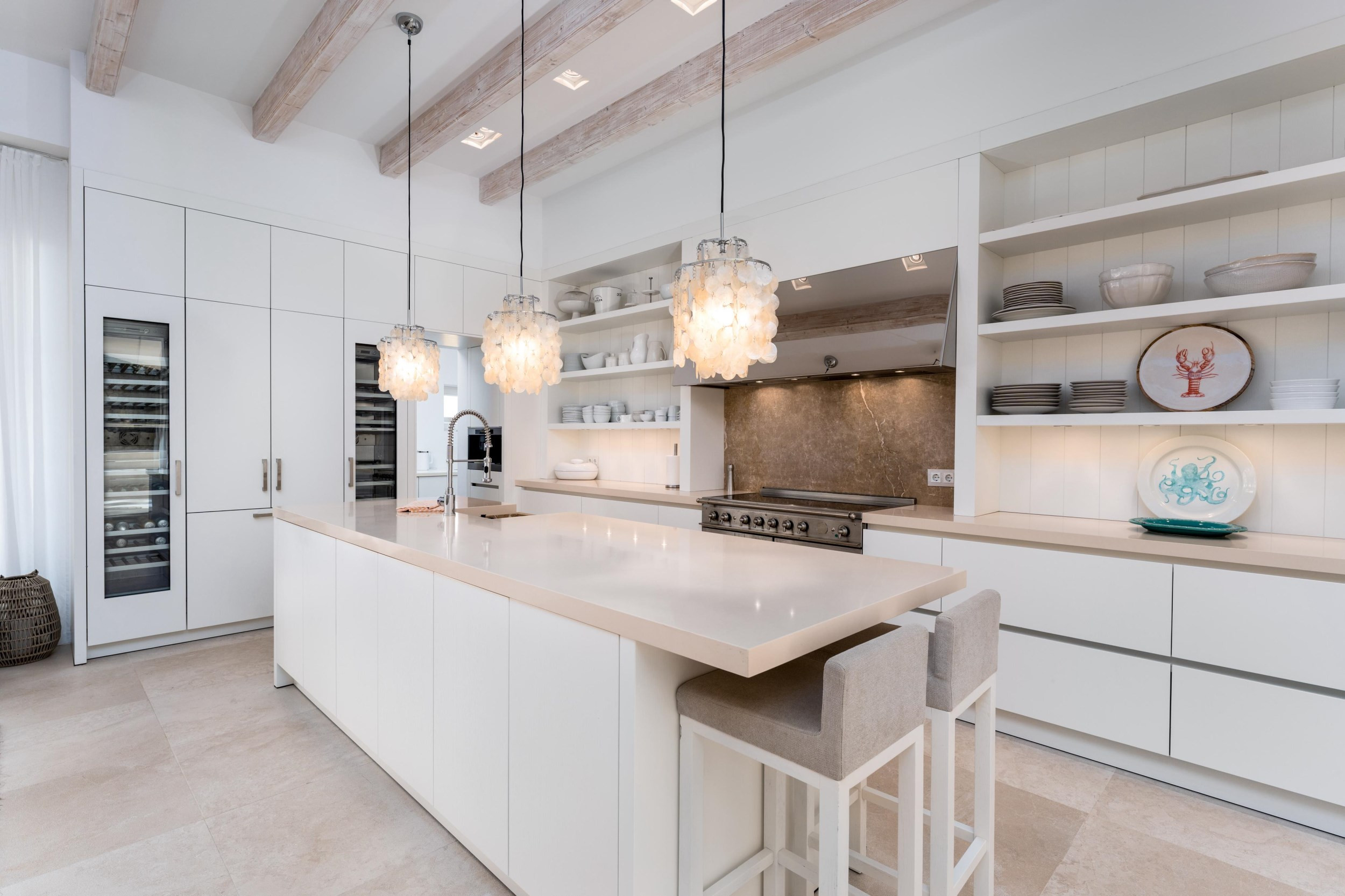 The interior of Villa Cori is to die for! Large rooms with neutral tones create a wonderful bright and spacious atmosphere perfectly complemented by eye catching splashes of colours from luxurious tones of gold and black to vibrant blues all tied together with elegant touches of detail.