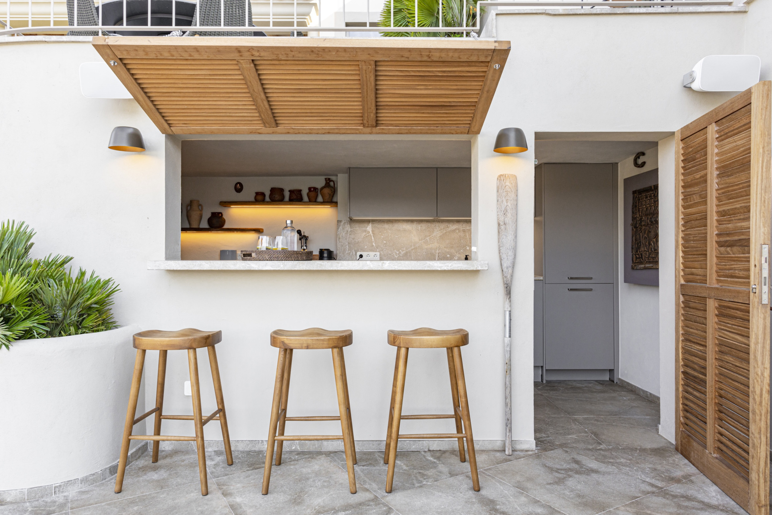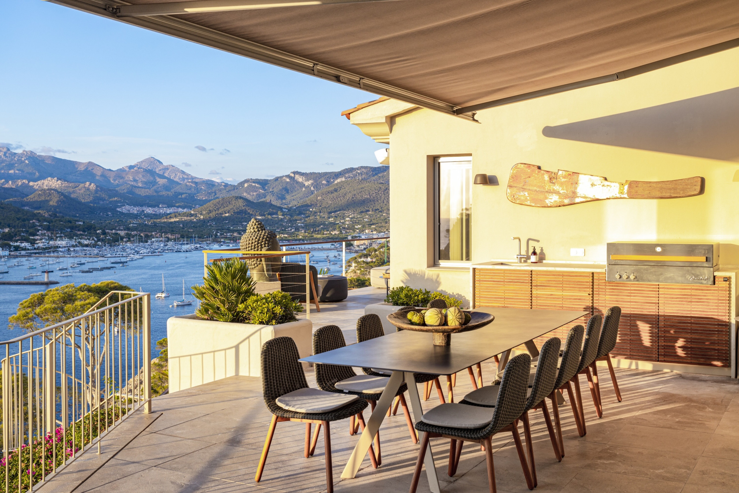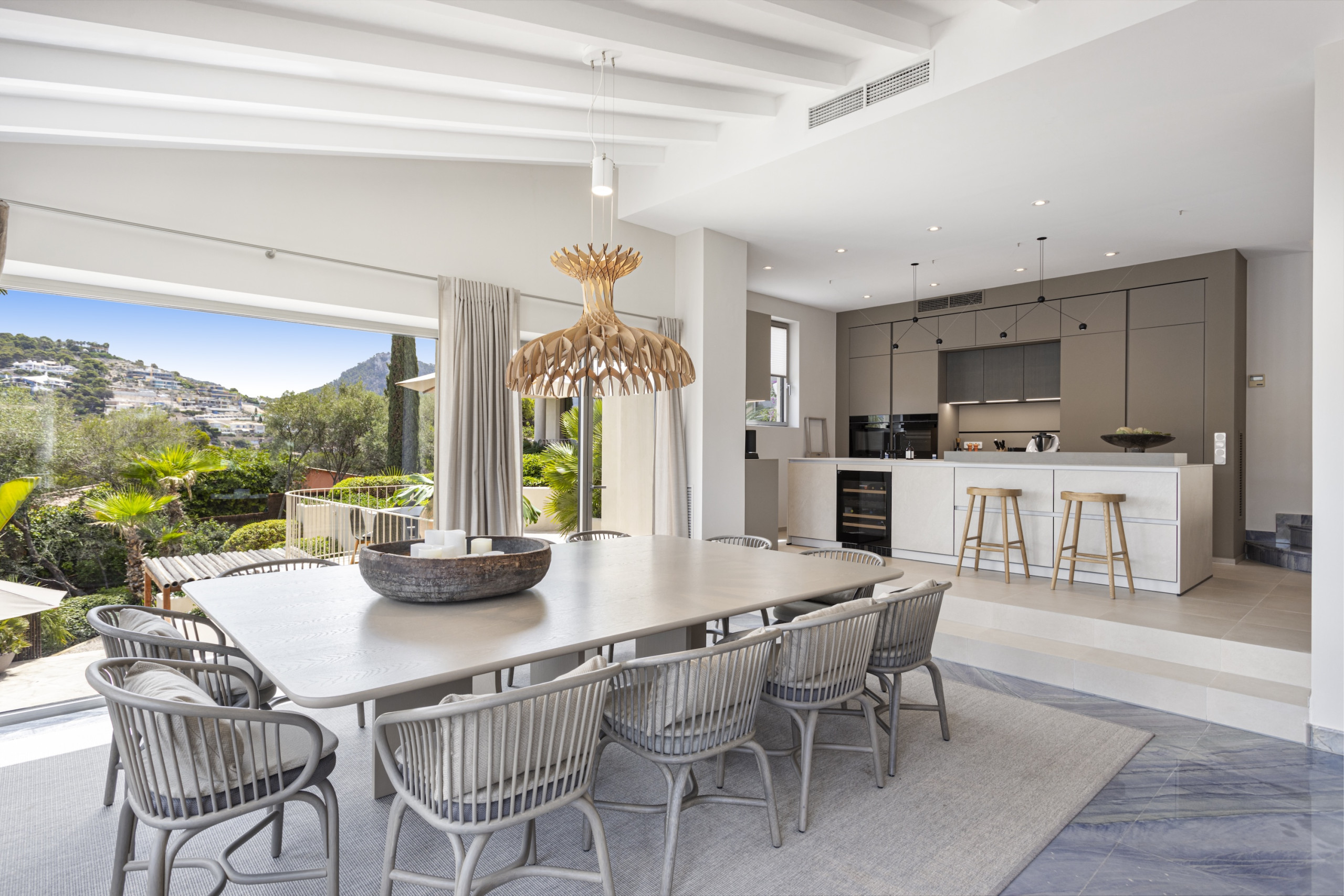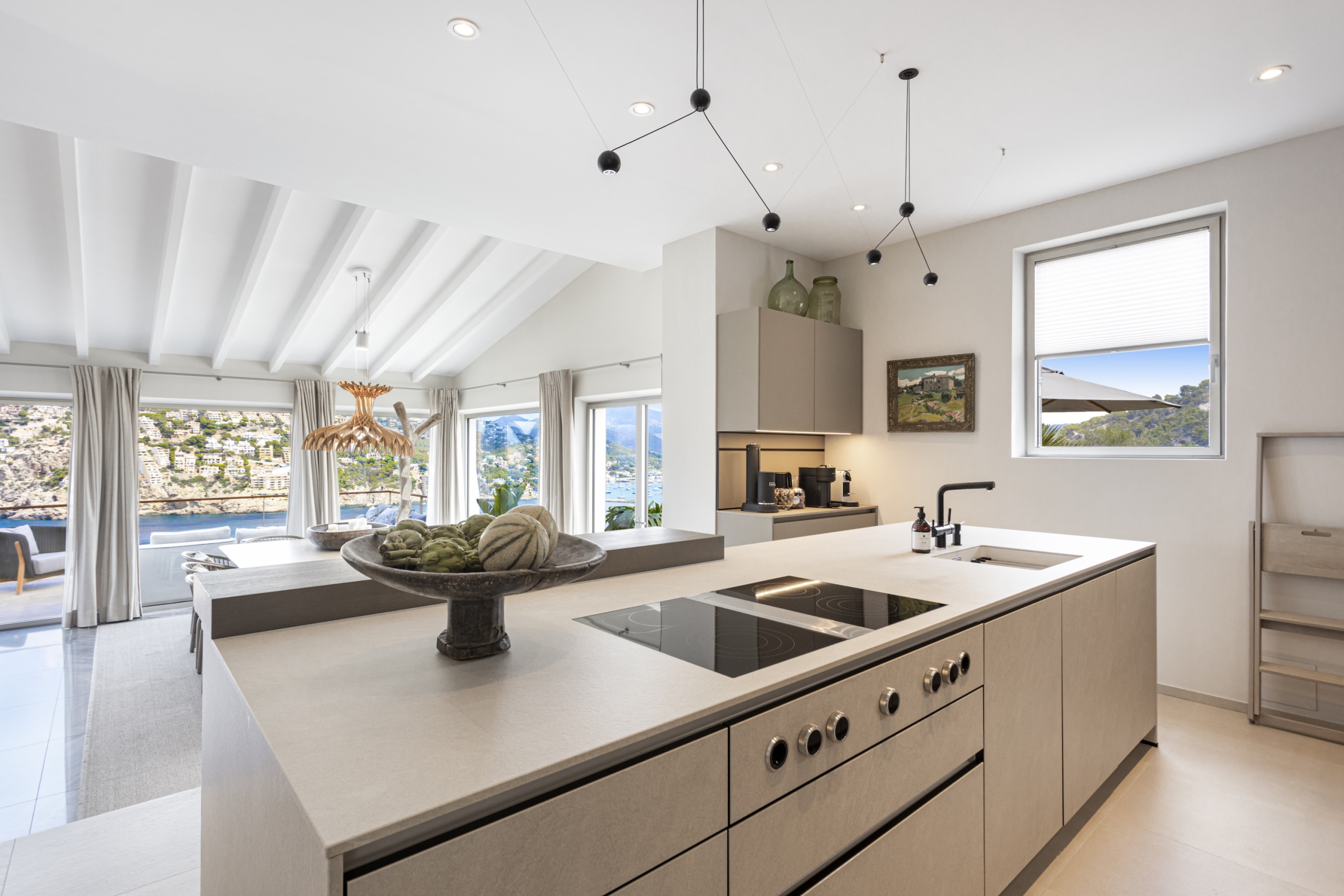 The villa includes a modern fully equipped kitchen with everything required to prepare delicious meals using fresh produce from Mallorca’s local markets. For those who enjoy outdoor dining, a superb outdoor kitchen and spacious terraces provide the ideal setting for long Mediterranean evenings shared with family and friends.