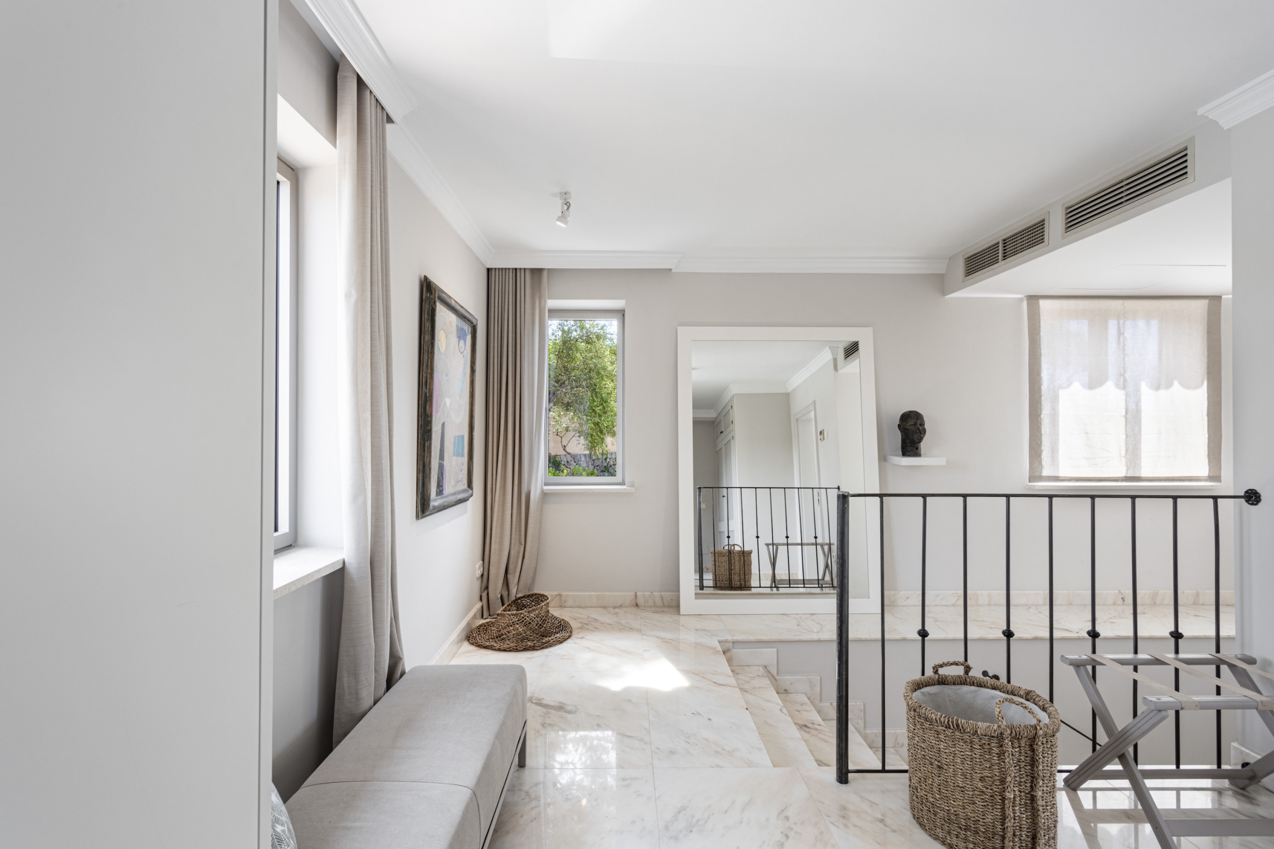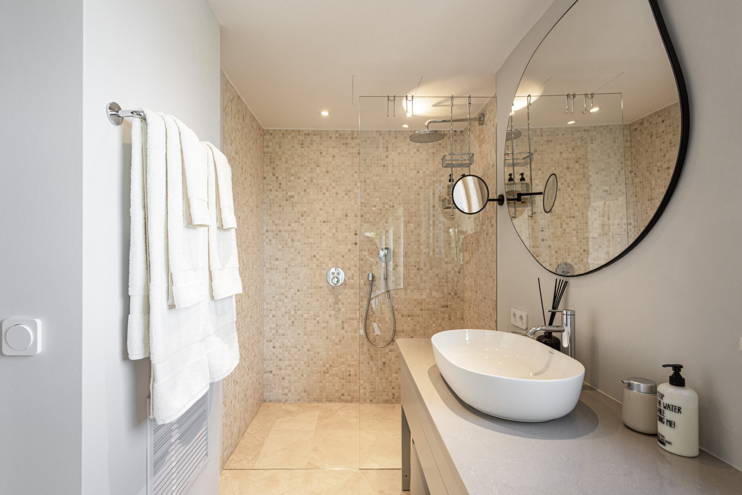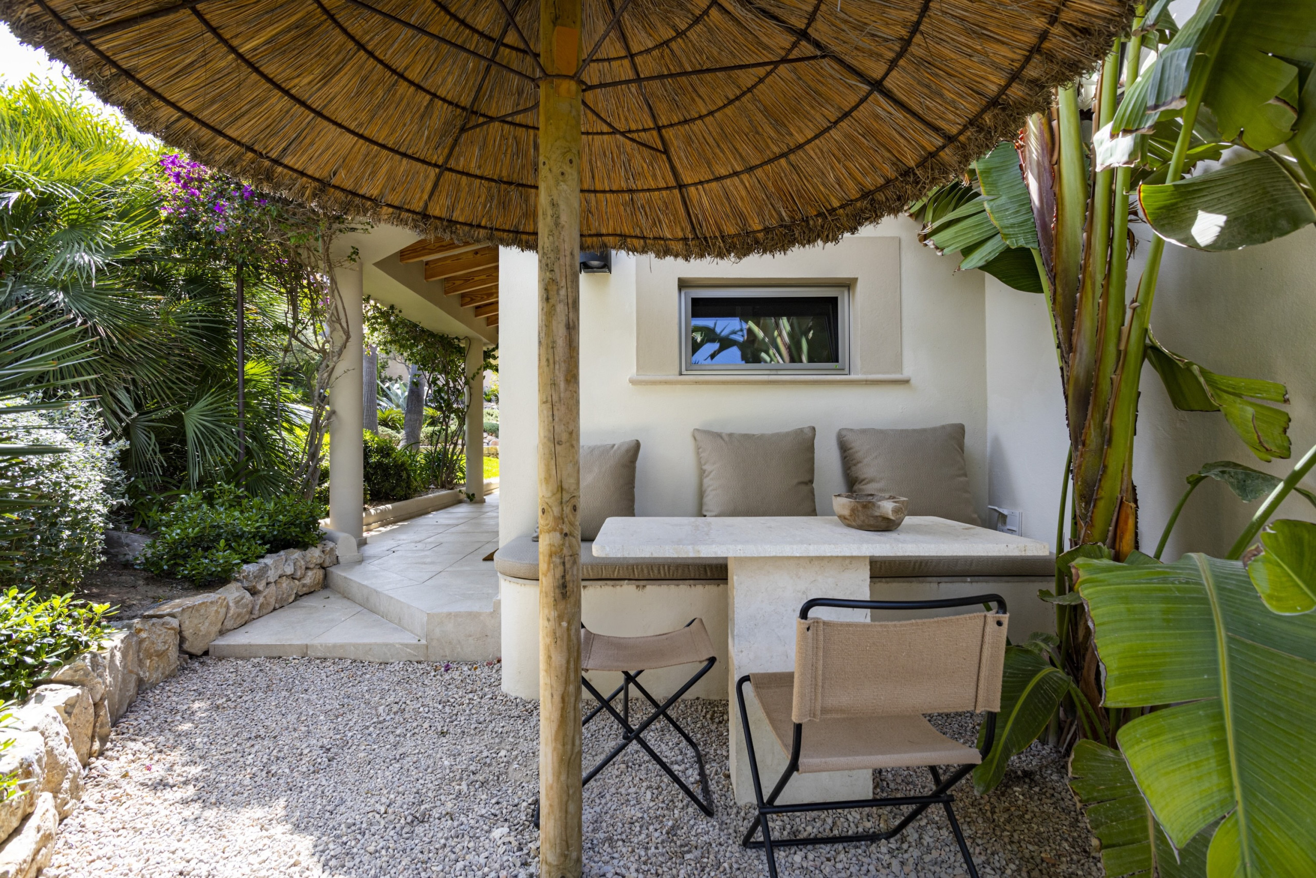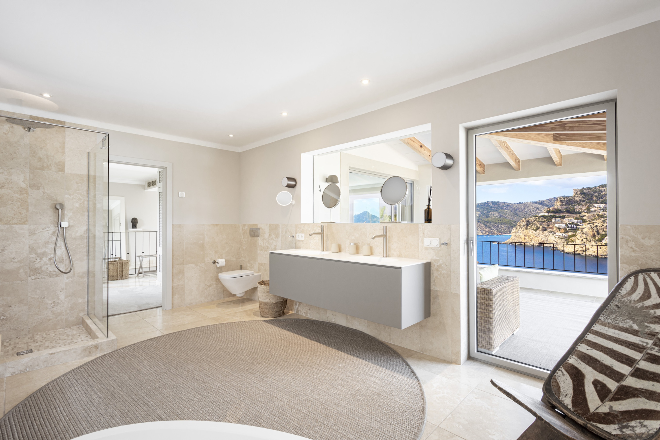 Villa Mimosa offers six beautifully appointed bedrooms, comfortably accommodating up to 12 guests. Each bedroom features its own elegant en-suite bathroom, ensuring privacy and comfort throughout your stay. Several of the suites enjoy stunning sea views and private terraces, offering peaceful spots to enjoy Mallorca’s famous sunsets over the Mediterranean.