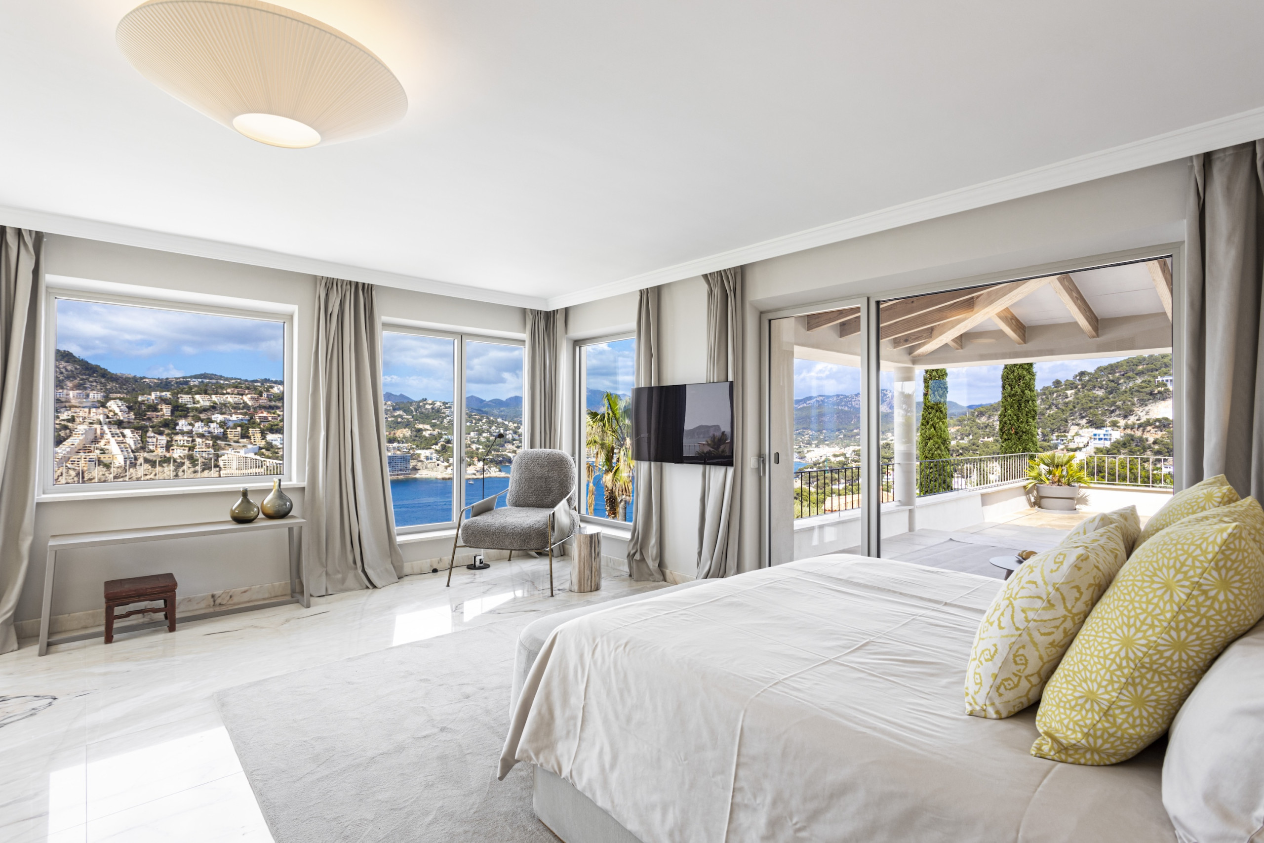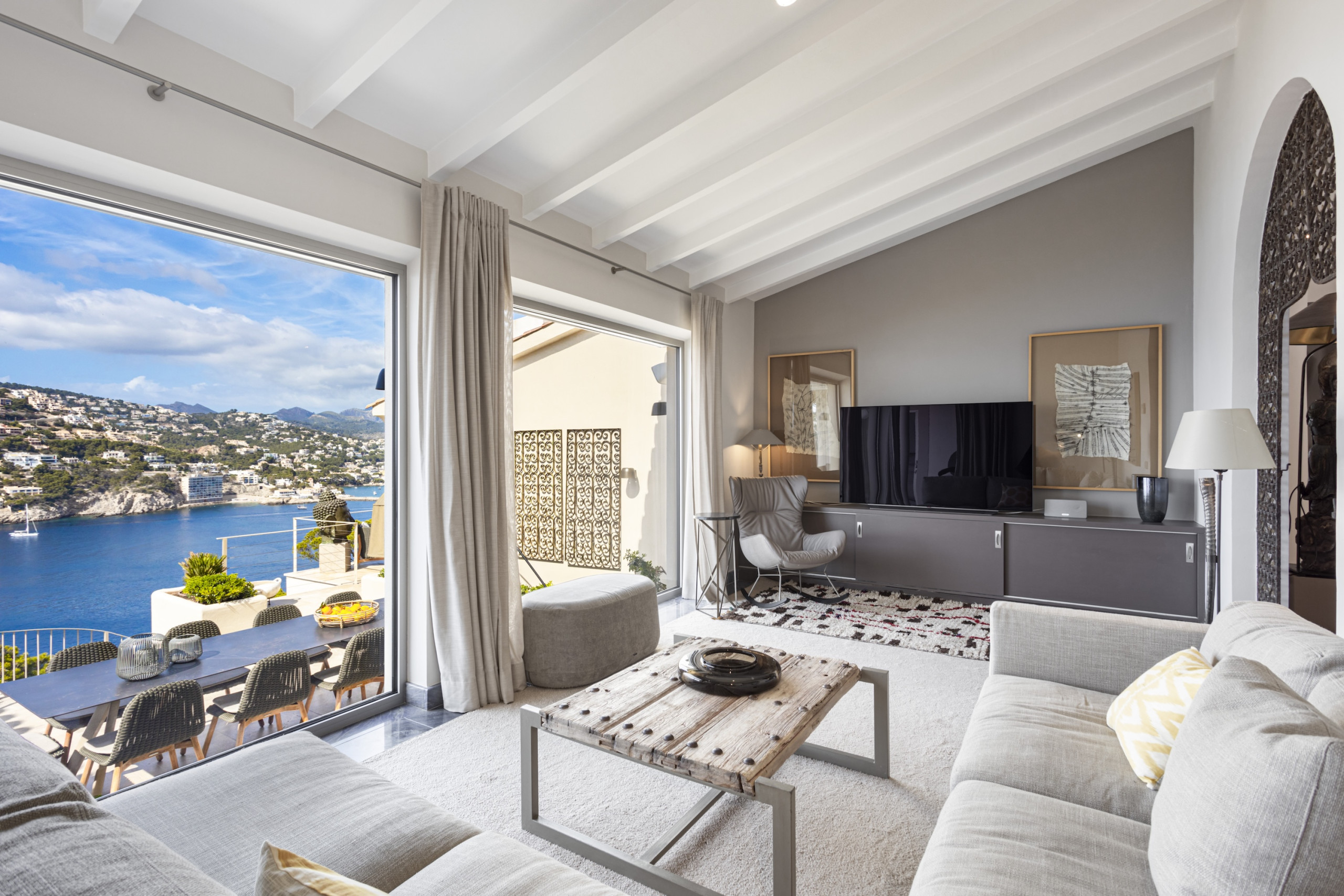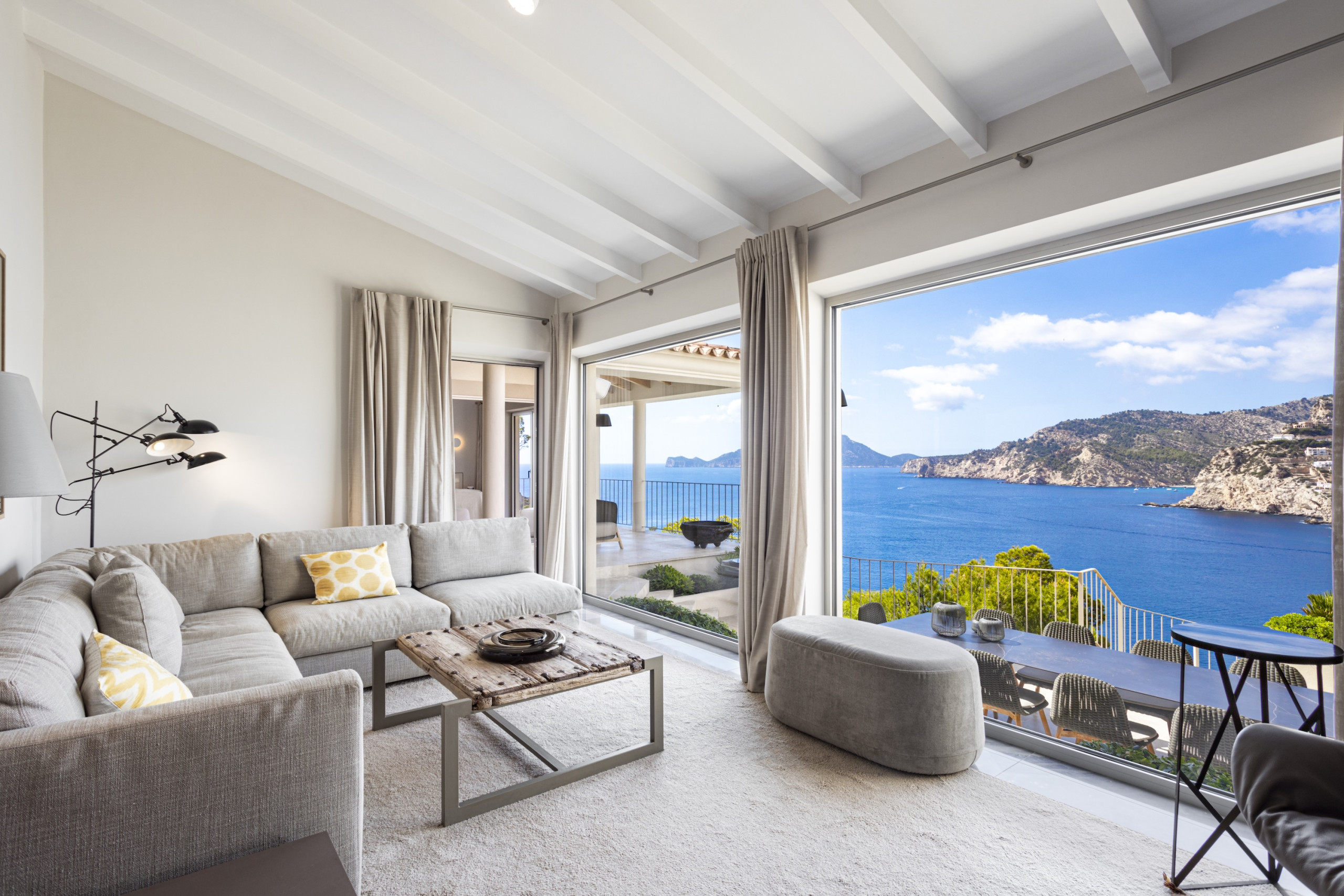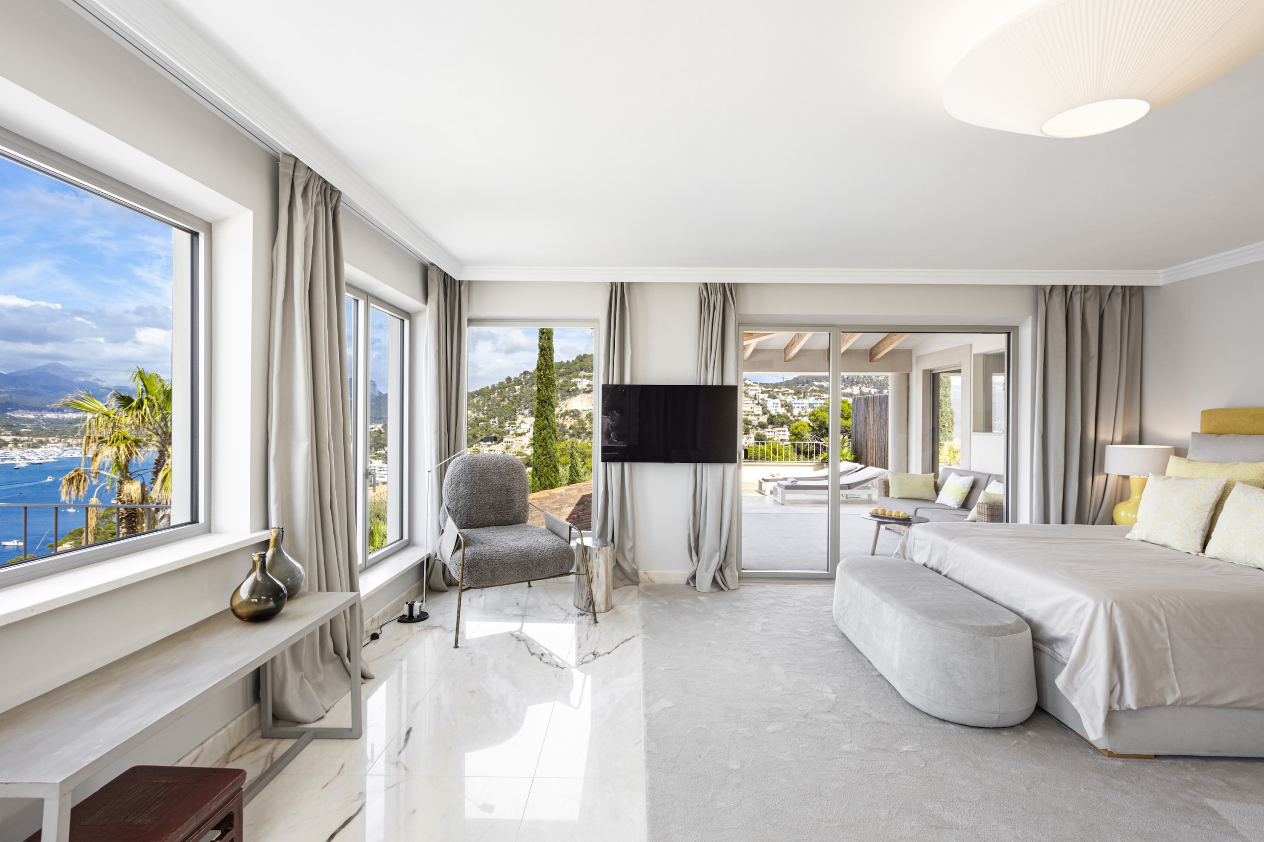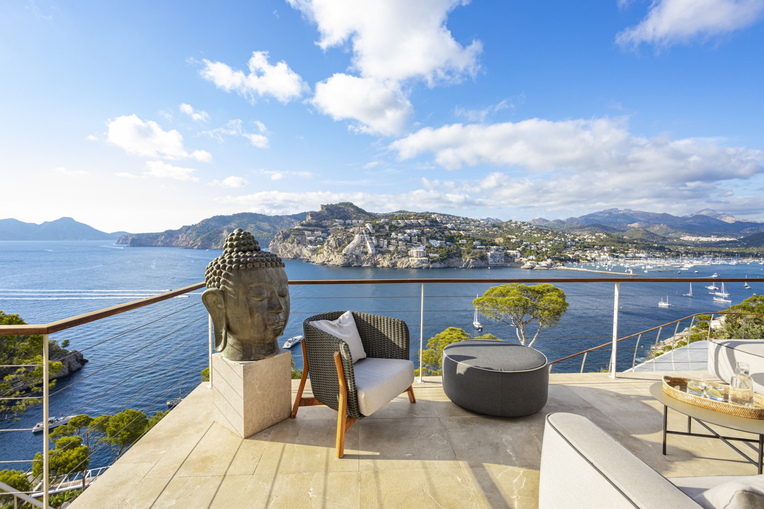 6 bedroom, 6 bathroom luxury villa in Port d’Andratx Mallorca with panoramic sea and harbour views, heated private swimming pool, jacuzzi, sauna, gym, outdoor kitchen, daily cleaning service and sleeps up to 12 guestsPerched just above the exclusive harbour of Port d’Andratx, Villa Mimosa is an exceptional luxury villa in Port d’Andratx Mallorca offering breathtaking panoramic views across the harbour, the sparkling Mediterranean Sea and the dramatic Tramuntana Mountains. Combining privacy, elegance and modern comfort, the villa provides the perfect setting for a truly unforgettable holiday in Mallorca.