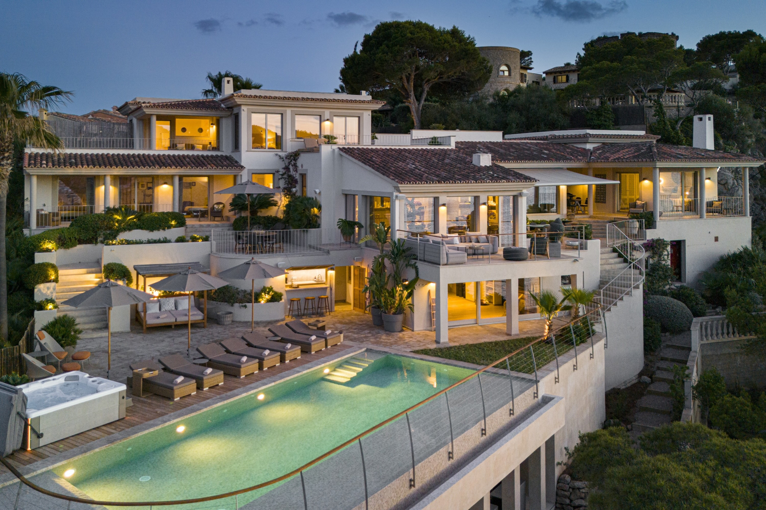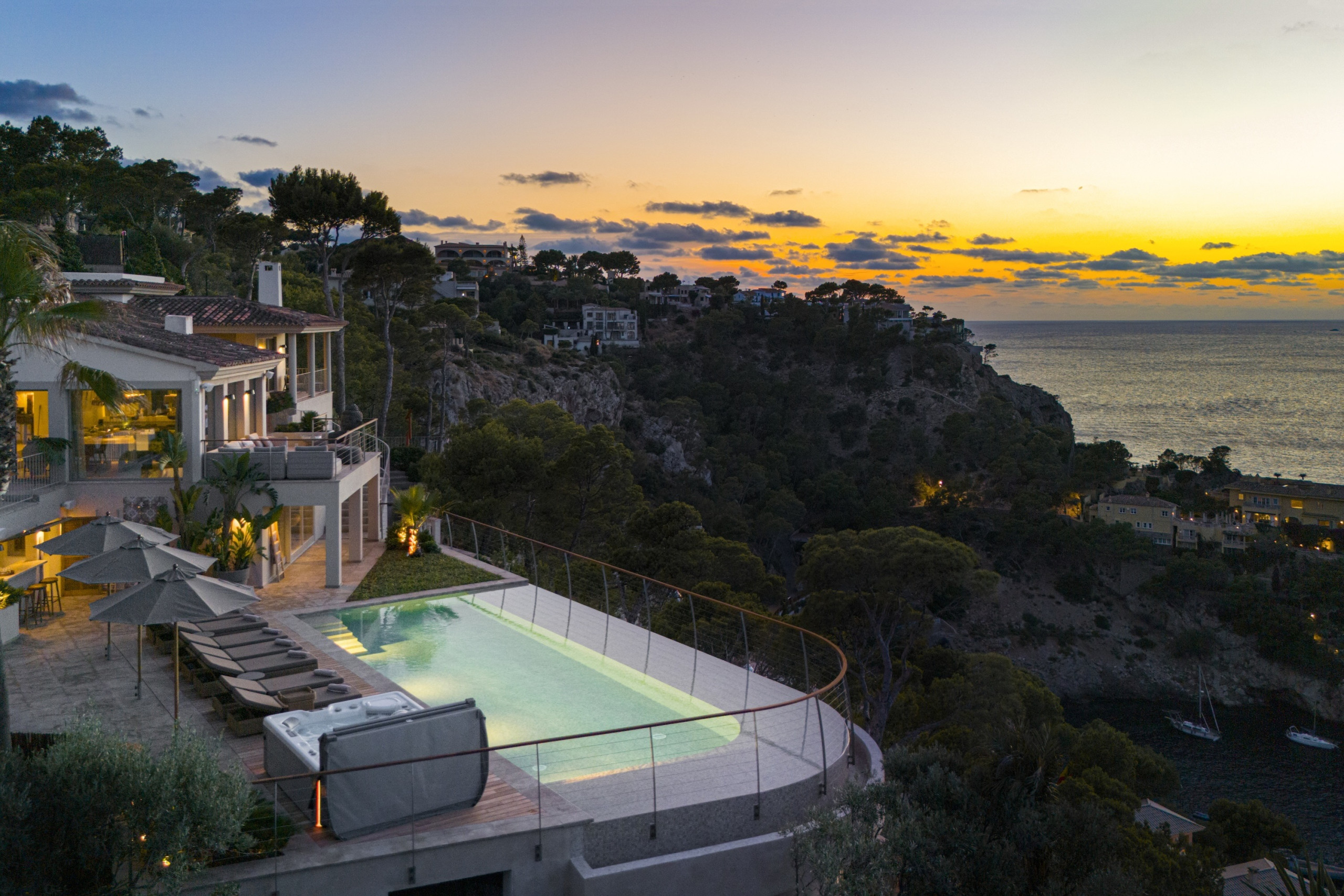 Villa Puesta del Sol is a Breathtaking luxury super villa perched on cliffside in Puerto Andratx, Mallorca
