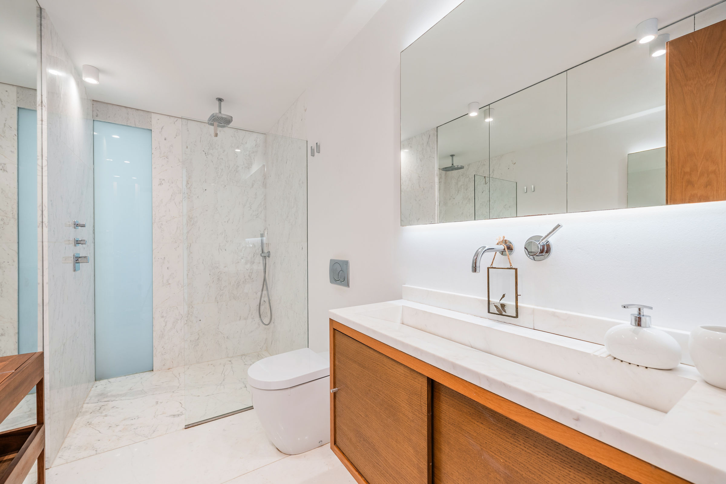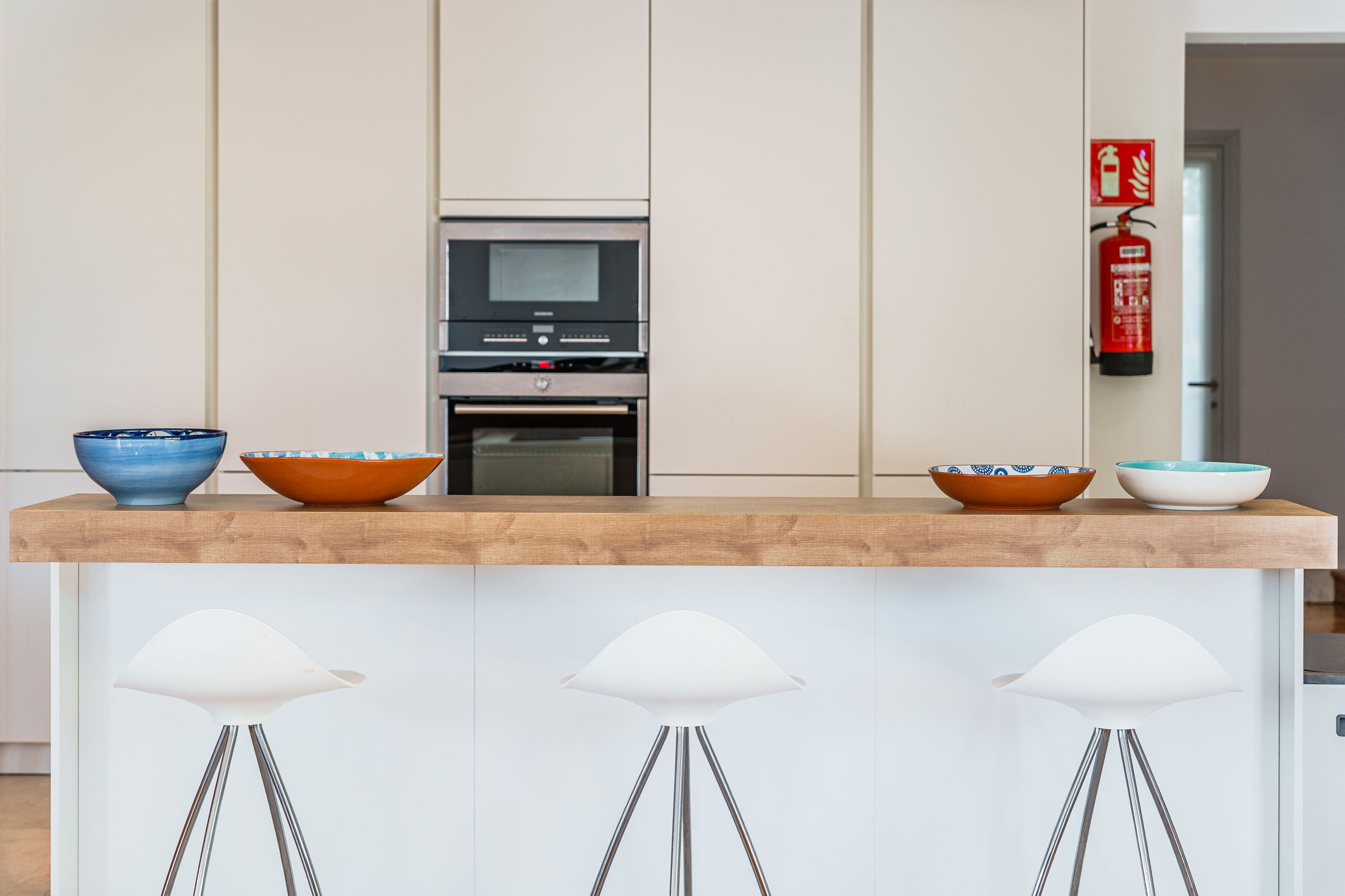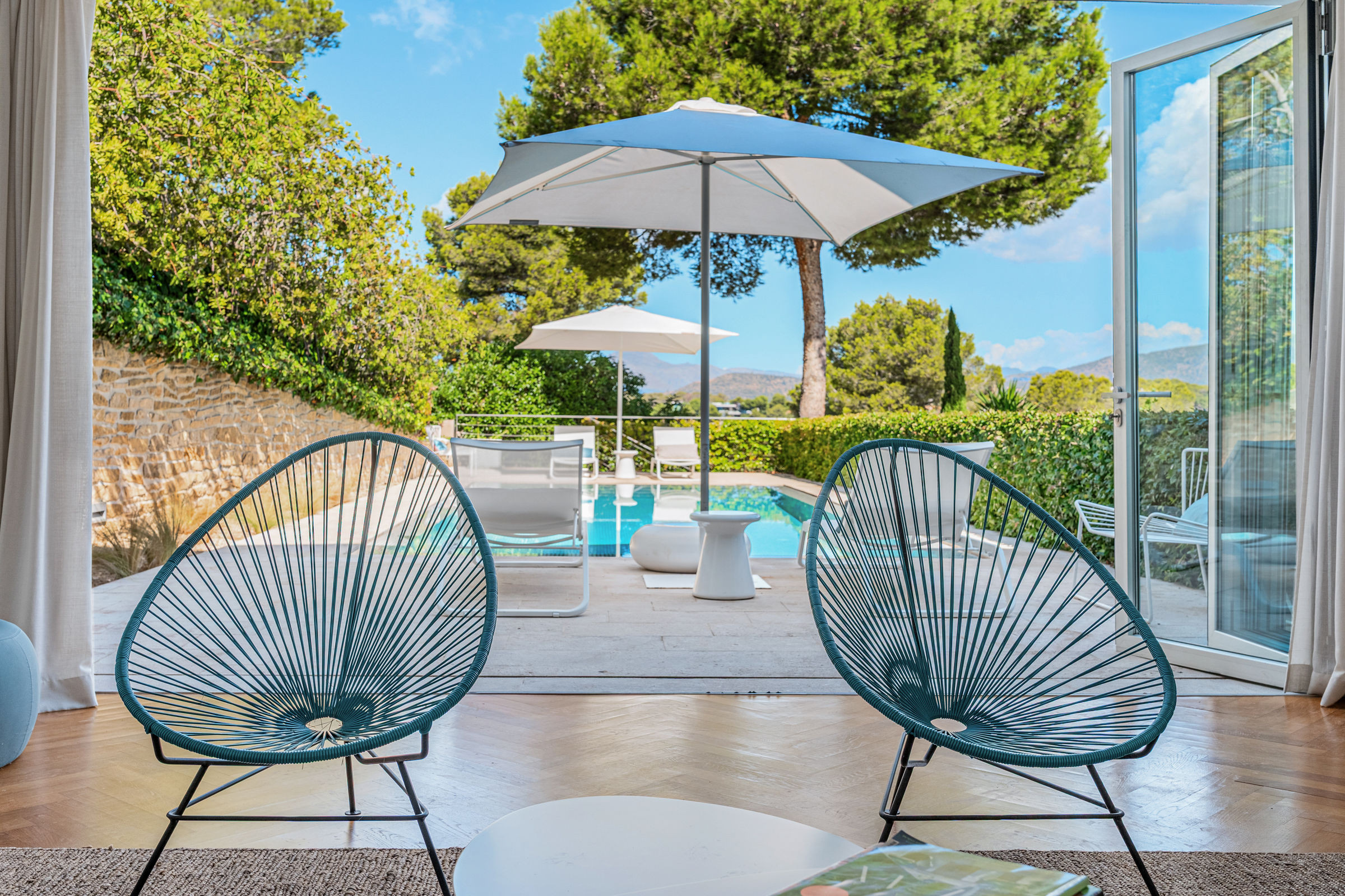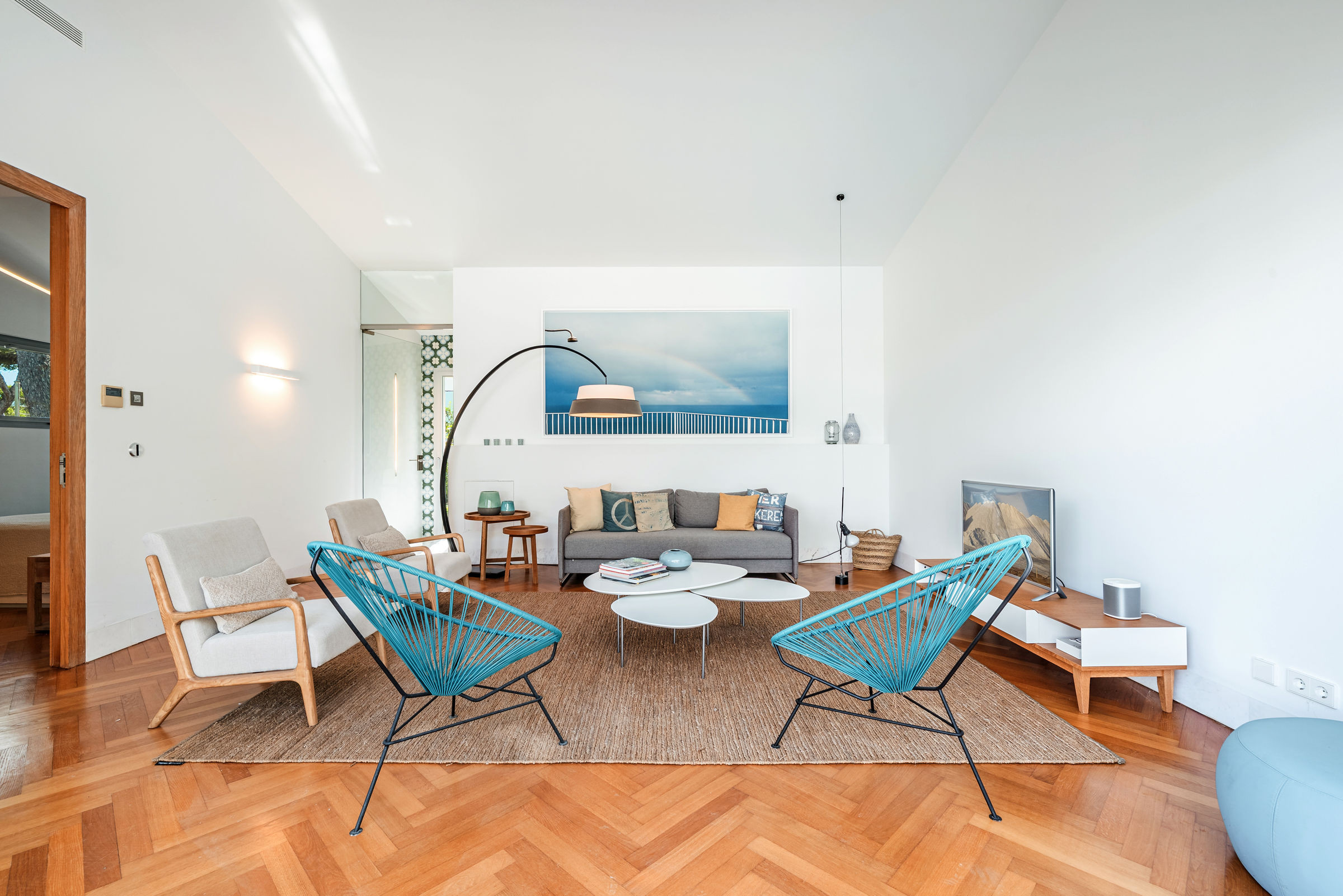 The outdoor spaces at Bellevue Cala Vinyes are truly exceptional. The private terrace enjoys uninterrupted sea views over Palma Bay, creating a stunning backdrop for your stay. A generous private swimming pool is surrounded by sun loungers, making it the perfect place to relax and soak up the Mediterranean sun in complete privacy.