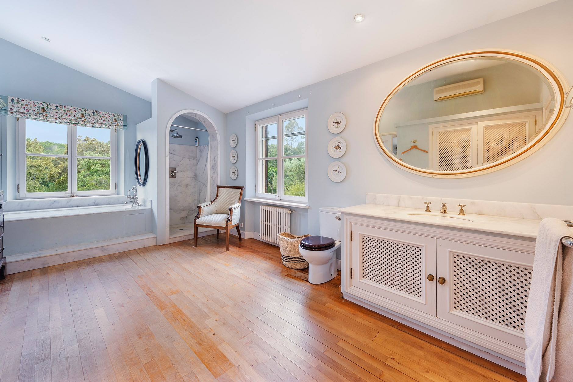 With five ensuite, air conditioned double bedrooms the villa comfortably absorbs two families and ensures privacy for all. At first floor there are three double rooms to the front of the house overlooking the garden and pool, and a further double room with balcony to the rear with mountain views & its own private terrace. The fifth double bedroom is located on the ground floor, which also has a private terrace over looking the garden and mountains and direct access to the garden.