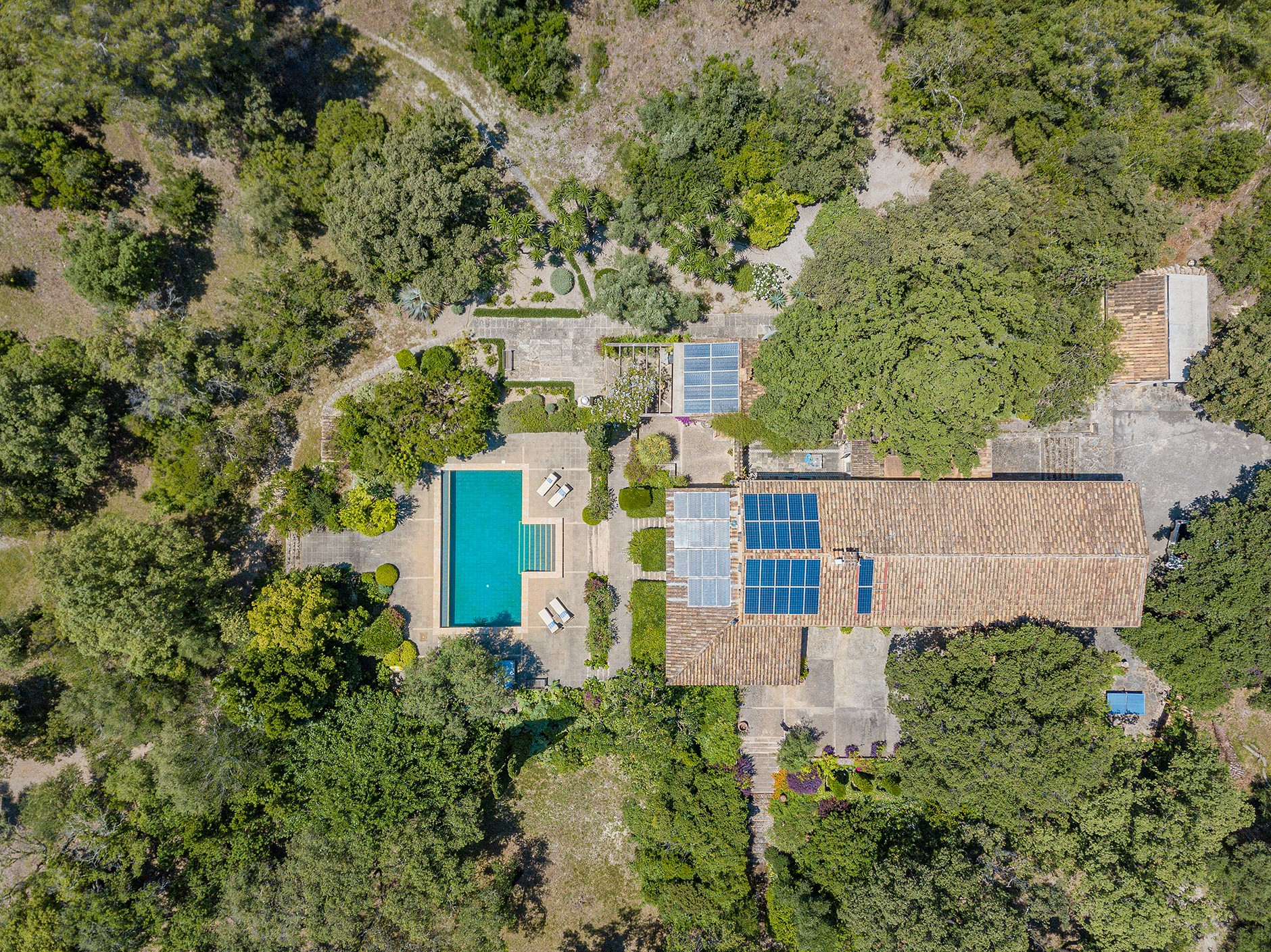 Steeped in history, the house was originally a hunting lodge of the Gatules estate and was thoughtfully rebuilt and expanded in the late 1990s. Since then, it has been meticulously cared for by the same family, retaining its character while embracing modern comfort. Set within 12 hectares of private land, the estate is surrounded by mature Mediterranean gardens, orchards, and ancient woodlands. Expansive terraces invite long, leisurely days outdoors, whether soaking up the sun, dining al fresco, or enjoying a sunset cocktail by the private swimming pool (12 x 6 m) with a relaxing ledge. Multiple outdoor dining areas and a fully equipped second kitchen make entertaining under the sky effortless. Outdoor kitchen facilities include a fridge, dishwasher, a built in BBQ and a gas BBQ.