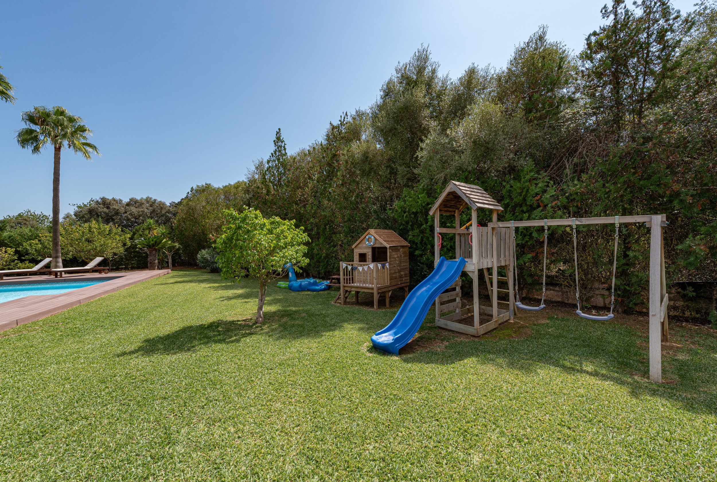 Modern Palmeras is surrounded by an extensive lawn and has both a ping-pong table and children`s play house, which along with the swimming pool (13m x 6m and between 1m and 1.80m in depth) will definitely keep the little ones happy!